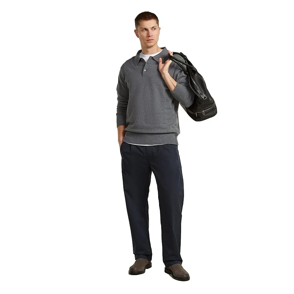 Дизайн свитера Willem - это образец изысканного минимализма. Он имеет прямой крой, создающий чистый, современный силуэт, который одновременно удобен и выгодно подчеркивает фигуру любого типа. Структурированный воротник добавляет нотку формальности и прекрасно держит форму, гарантируя, что вы всегда будете выглядеть опрятно и собранно. Классическая застежка на пуговицах на планке позволяет регулировать стиль: вы можете полностью застегнуть его для элегантного вида или слегка расстегнуть для более непринужденного. Длинные рукава отделаны тонкими ребристыми манжетами, которые не только добавляют текстурную деталь, но и обеспечивают плотное прилегание, защищая от холода. Это тщательное внимание к деталям делает свитер Willem незаменимым элементом коллекции любого взыскательного джентльмена.