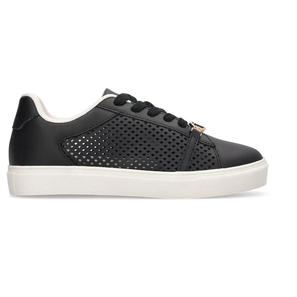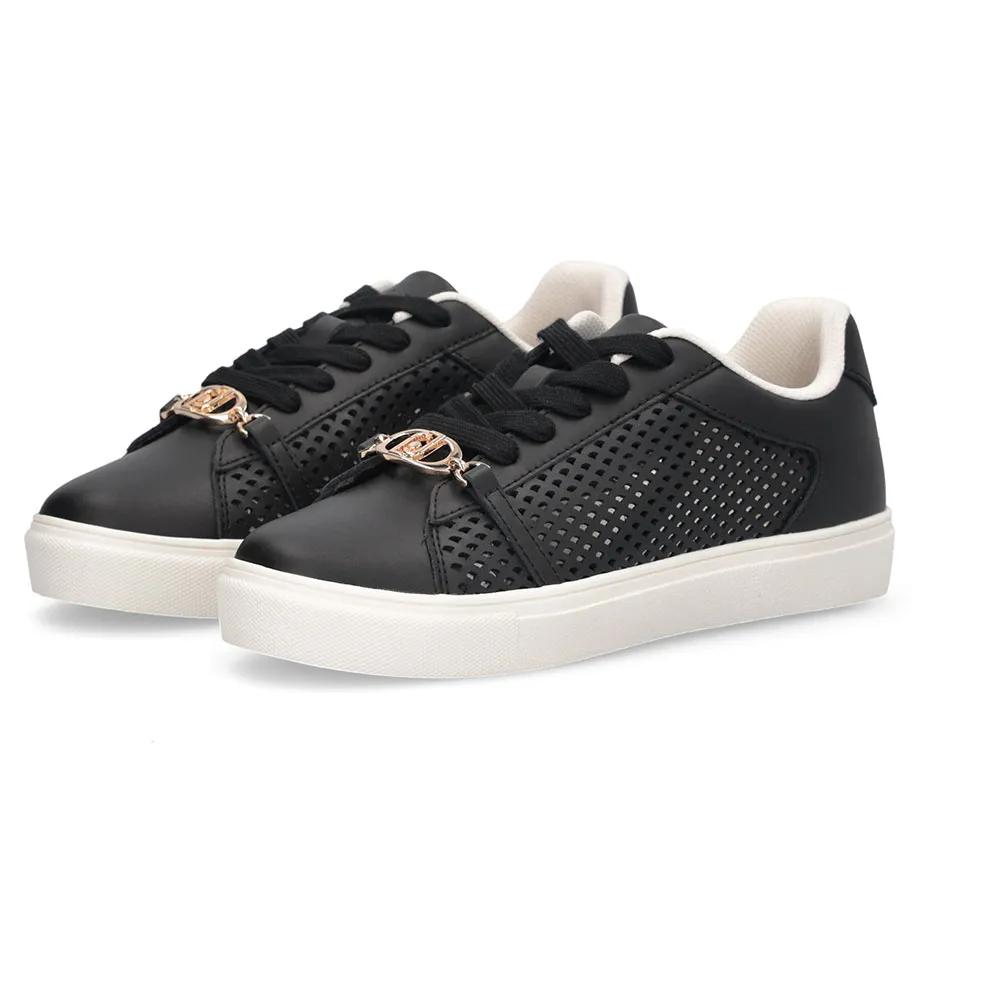 Красота Kiki 03 заключается в ее изысканных деталях. Верх, выполненный из мягкой кожи, дополнен тонкой, но стильной перфорацией по бокам. Это не только добавляет современную текстуру, но и способствует воздухопроницаемости, обеспечивая комфорт вашим ногам в течение всего дня. Главная отличительная черта - элегантная отделка в виде трензеля на мыске, гордо демонстрирующая культовый монограммный логотип LIU·JO. Эта фирменная фурнитура преображает классические кроссовки, наполняя их ноткой конного шика и безошибочно узнаваемой индивидуальностью бренда, делая их мгновенно узнаваемыми как предмет роскоши.