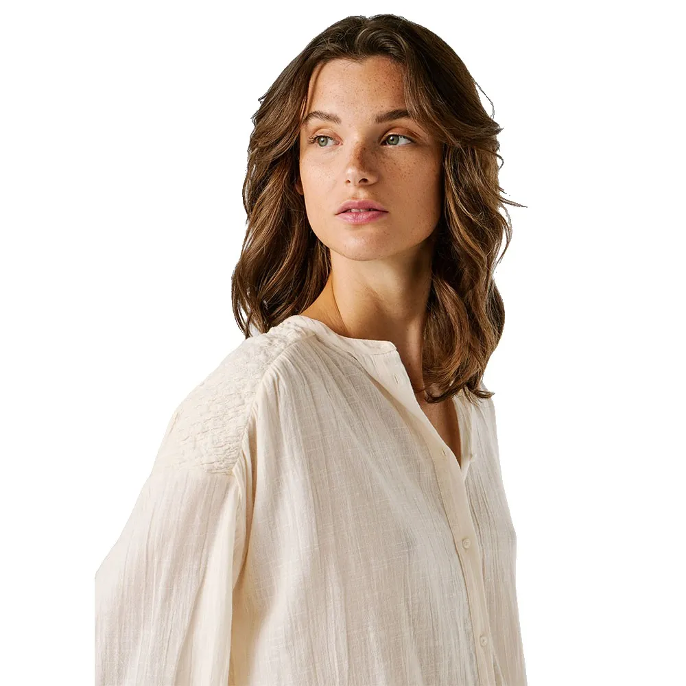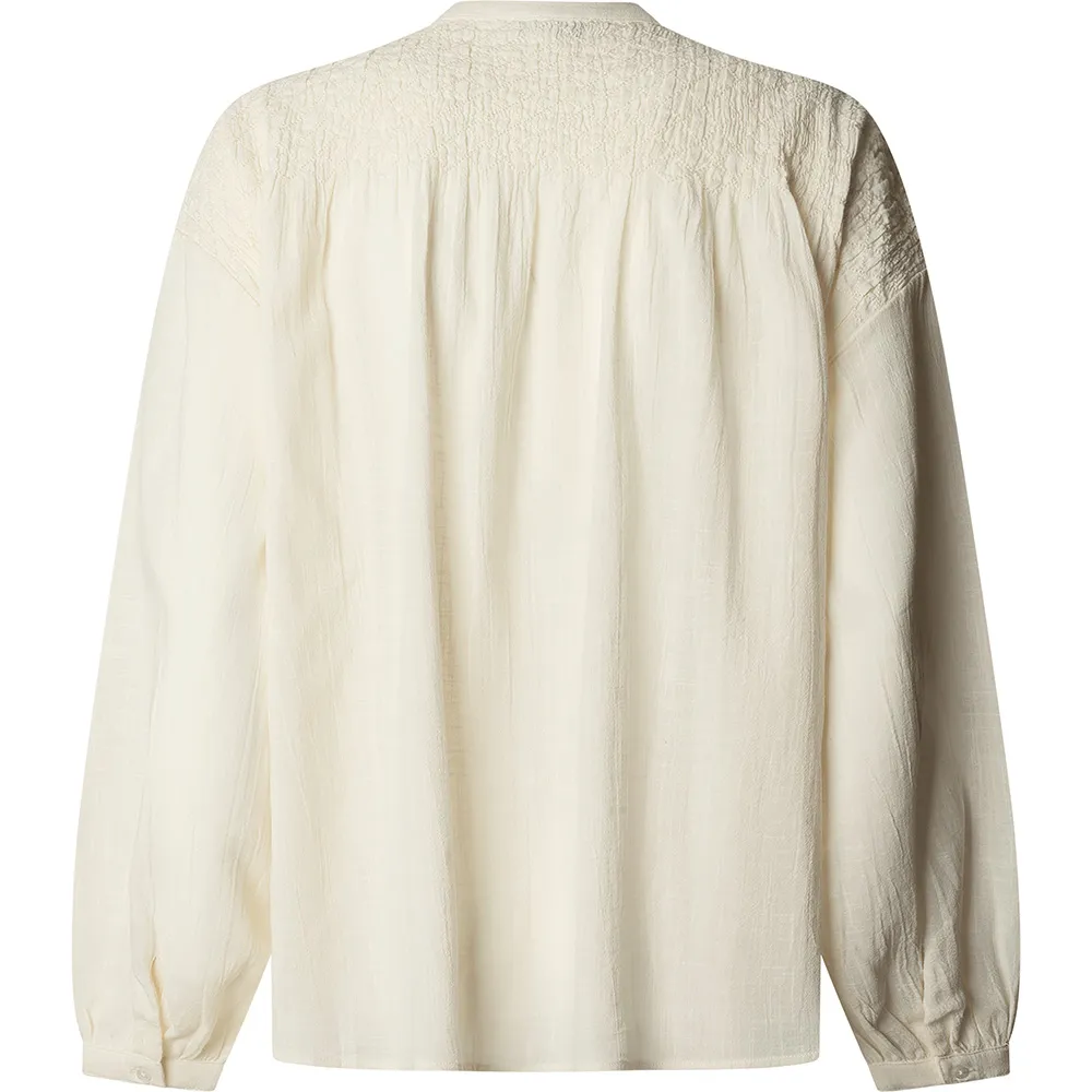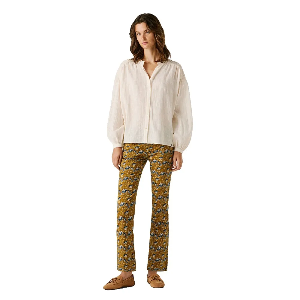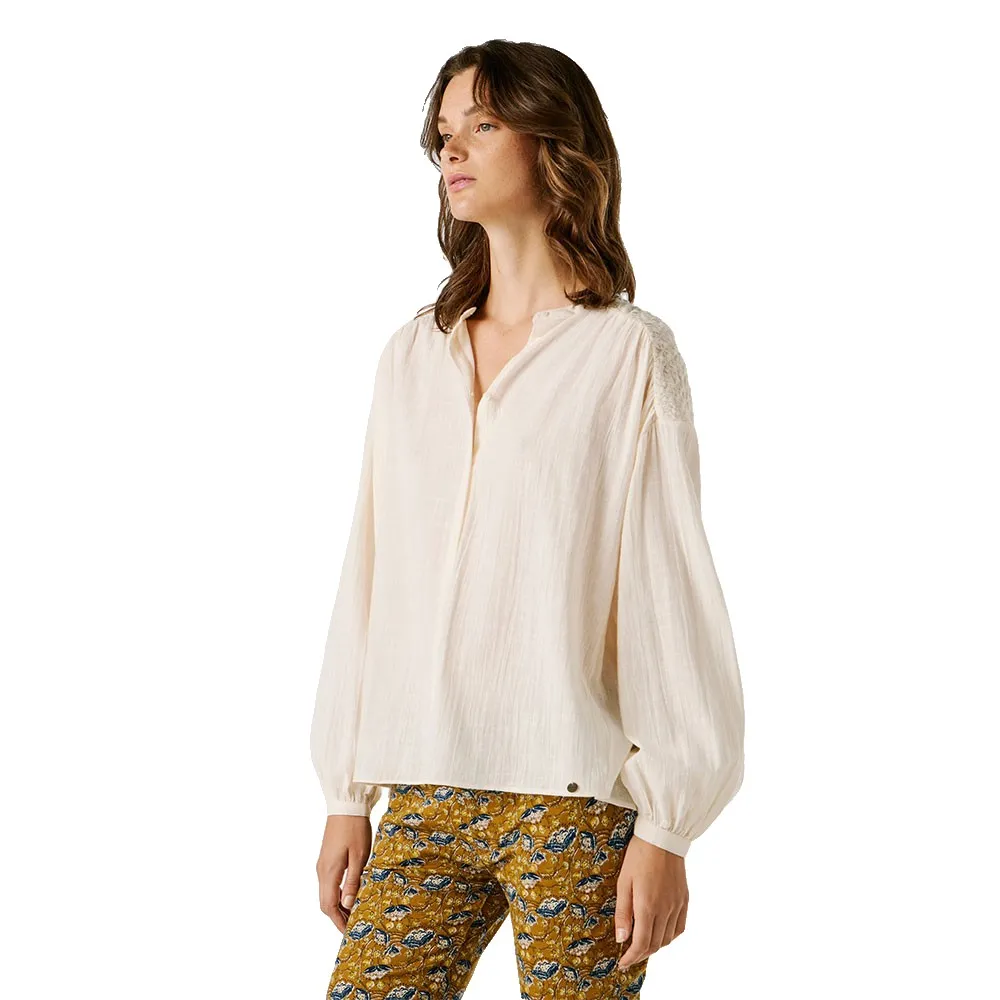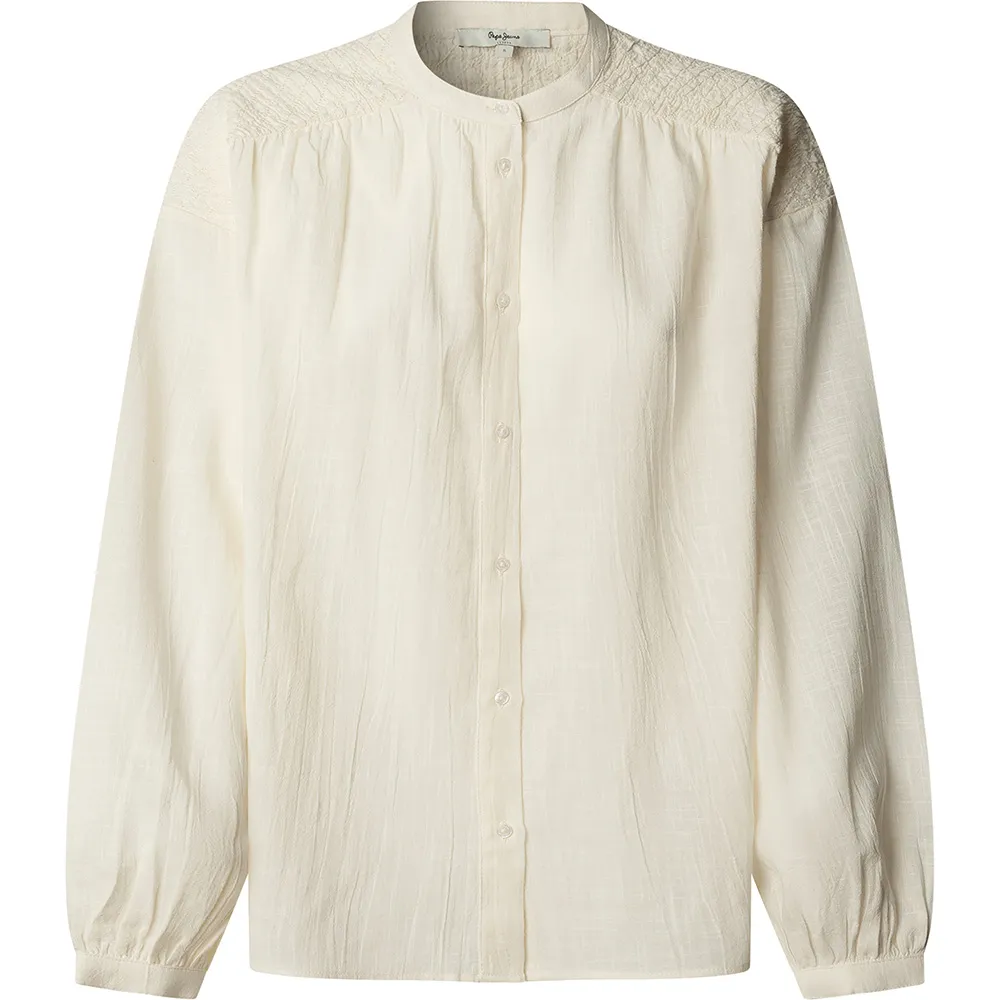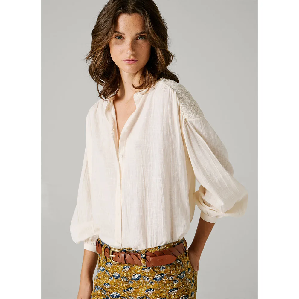 Созданная для тех, кто ценит изысканную эстетику, эта красивая рубашка с длинными рукавами является свидетельством наследия качества и моды, вдохновленной Лондоном, от Pepe Jeans. Дизайн основан на шикарном и минималистичном воротнике Мао, который предлагает чистую, современную альтернативу традиционным рубашкам с воротником. Этот изысканный вырез создает привлекательную рамку, идеально подходящую для демонстрации изящных украшений или для элегантного ношения как самостоятельного элемента гардероба. Рубашка имеет полную переднюю планку, отличающуюся деликатной сборкой, которая добавляет женственности и визуальной привлекательности, превращая эту простую блузку из обычной вещи в воплощение утонченной элегантности.