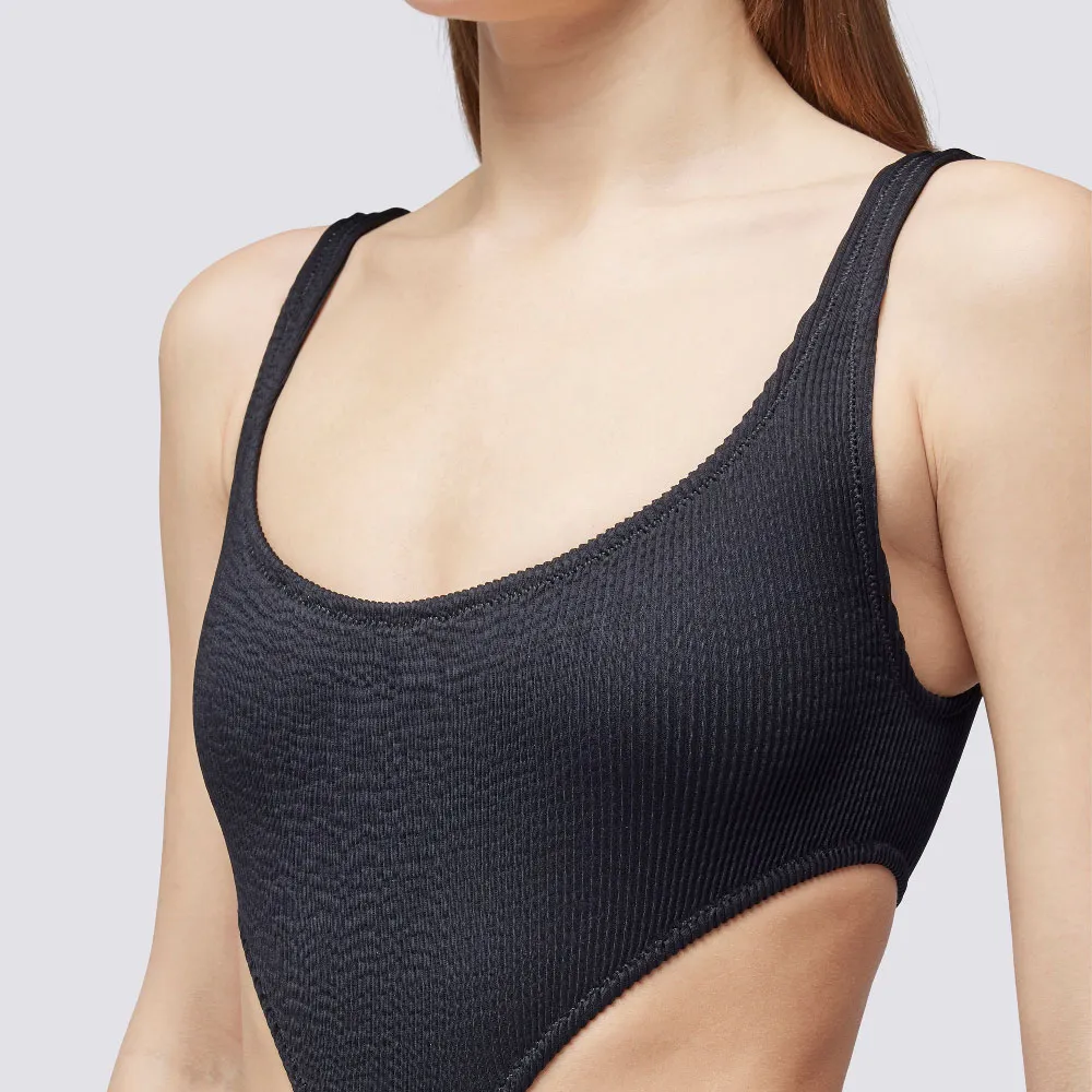 Подчеркните свой силуэт, выбрав цельный купальник с вырезами из удобной и мягкой рифленой ткани.