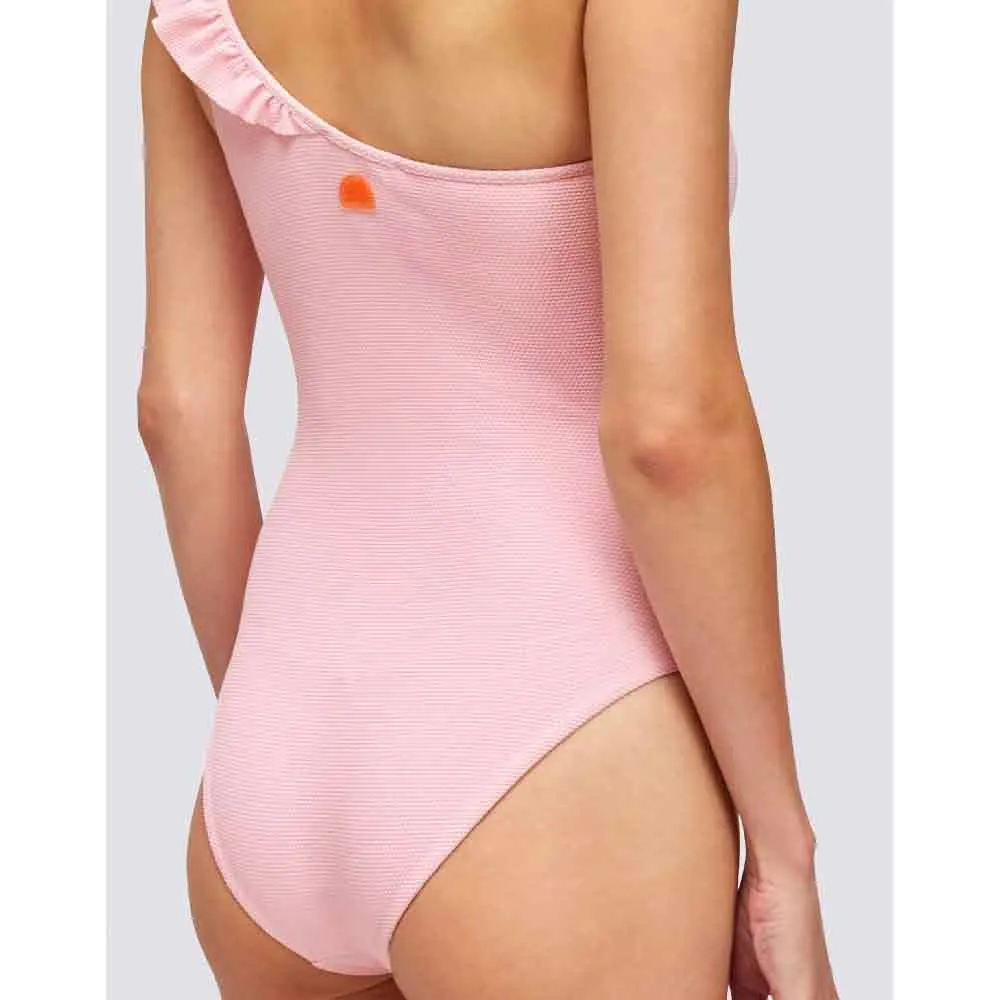 Отличительной чертой является искусно выполненная широкая боковая оборка, изящно ниспадающая вдоль тела. Эта деталь добавляет женственности и динамичности, подчеркивая силуэт и придавая ему утонченность и гламур, которые являются визитной карточкой SUNDEK. Это игривый, но изысканный элемент, который гарантирует, что вы будете привлекать внимание по всем правильным причинам.