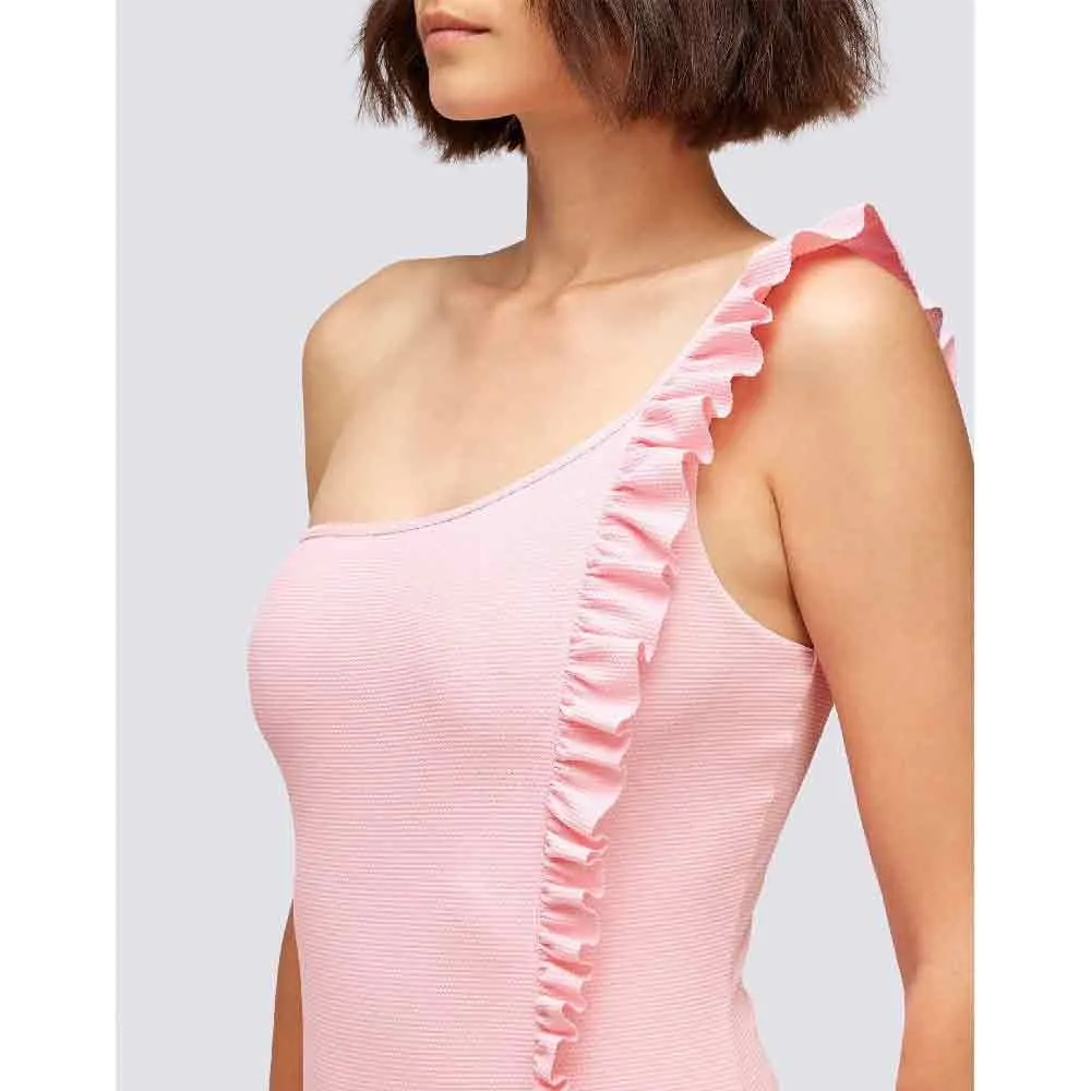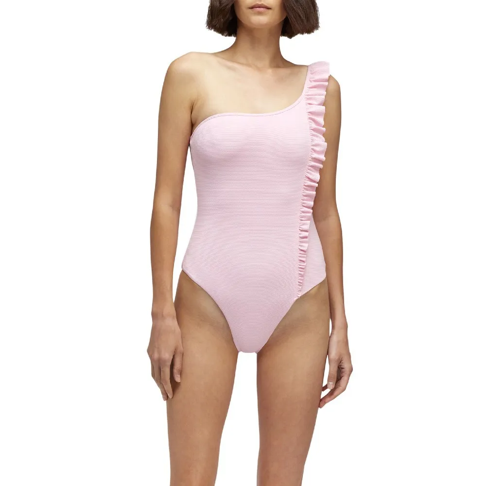 Женский слитный купальник Lillibeth на одно плечо из ткани пике с боковыми оборками, придающими ему изысканный и гламурный вид.