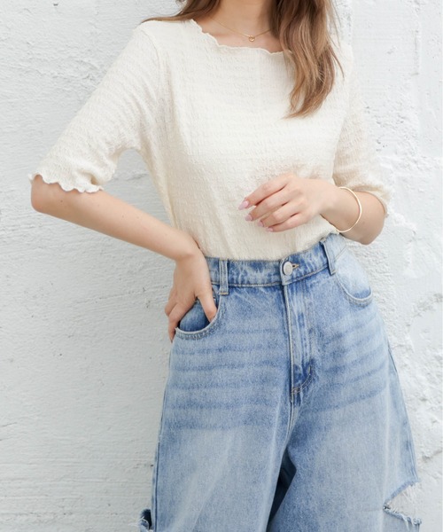 Пуловер Mellow идеально сочетается с любыми брюками или юбками. Простой, но приятный на ощупь, он выполнен из фактурного крепа. Идеальный крой также создает эффект стройности. Мягкая отделка создает милый образ. Простой, но подчеркнутый мягкой отделкой. Складки спереди создают изысканный вид. Эффект стройности. Длинные рукава 5/4 создают эффект стройности. ■Ткань. Мягкая фактурная креповая ткань. Креповая ткань с тонкой текстурой. Она не очень эластична, но мягкая и приятная на ощупь. --------------------- Прозрачность: Слегка прозрачный только в белом цвете. Подкладка: Нет. Толщина: Тонкая. Эластичность: Незначительная.