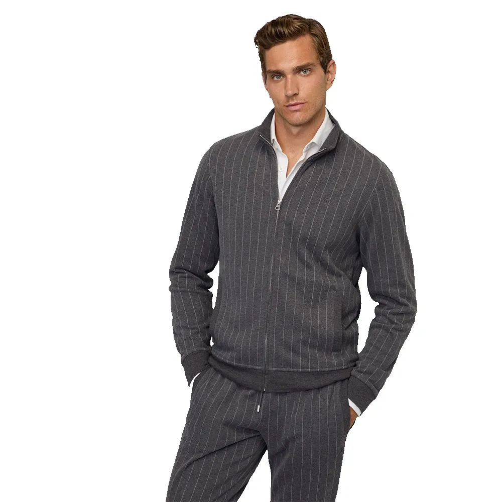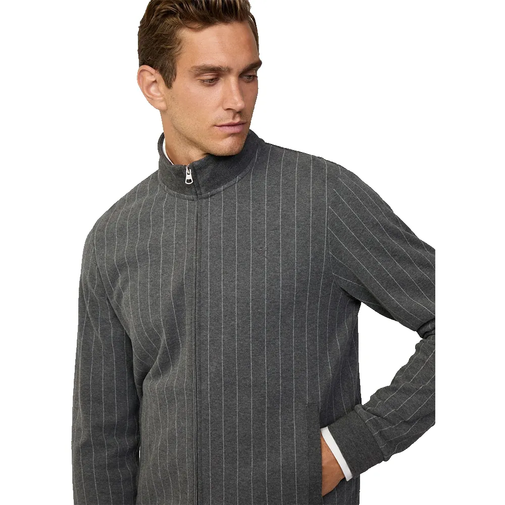 Эта толстовка на молнии имеет ребристые манжеты и нижний край, обеспечивая плотную и удобную посадку, а также добавляя нотку классического спортивного стиля. Эти детали не только улучшают общий внешний вид, но и помогают сохранять тепло и поддерживать форму толстовки с течением времени. Тщательное внимание к деталям и высокое качество исполнения видны в каждом стежке, отражая стремление HACKETT к созданию одежды премиум-класса.