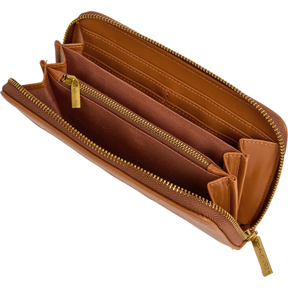 Основное отделение кошелька Danara с застежкой-молнией по периметру, защитой от RFID, внутренним карманом на молнии и вышитым классическим логотипом спереди.
