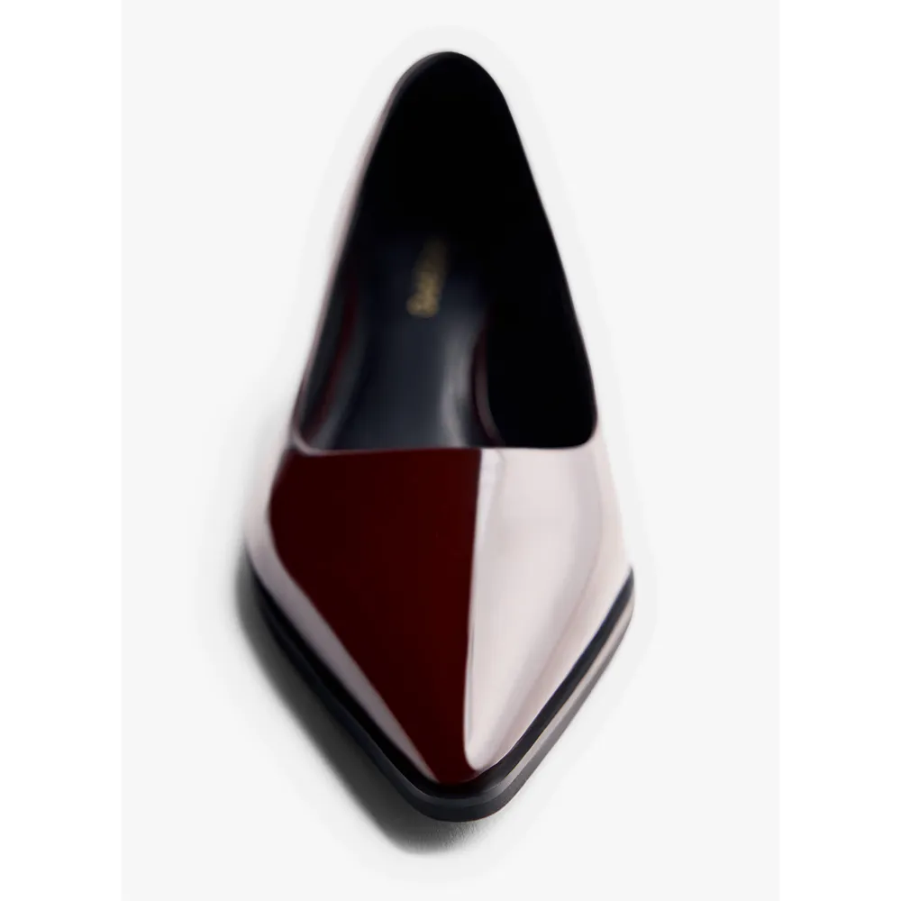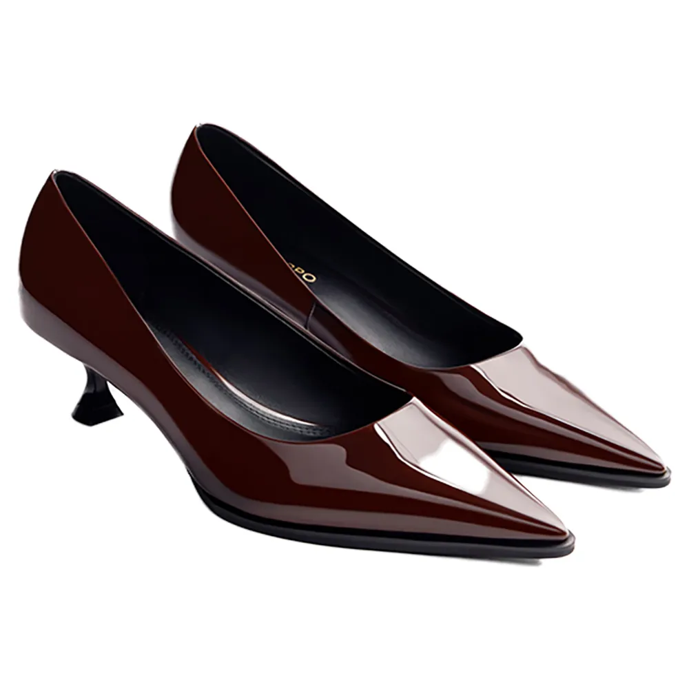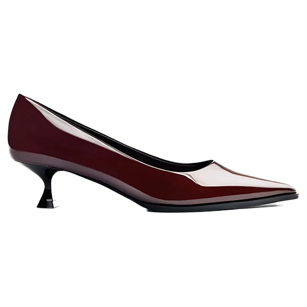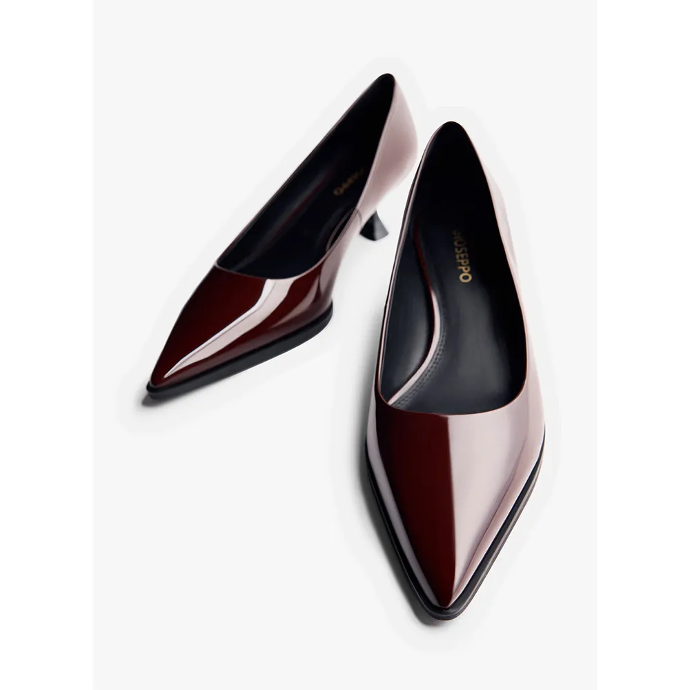 Туфли на каблуке с эффектом лакированной кожи, заостренным носком и каблуком-шпилем.