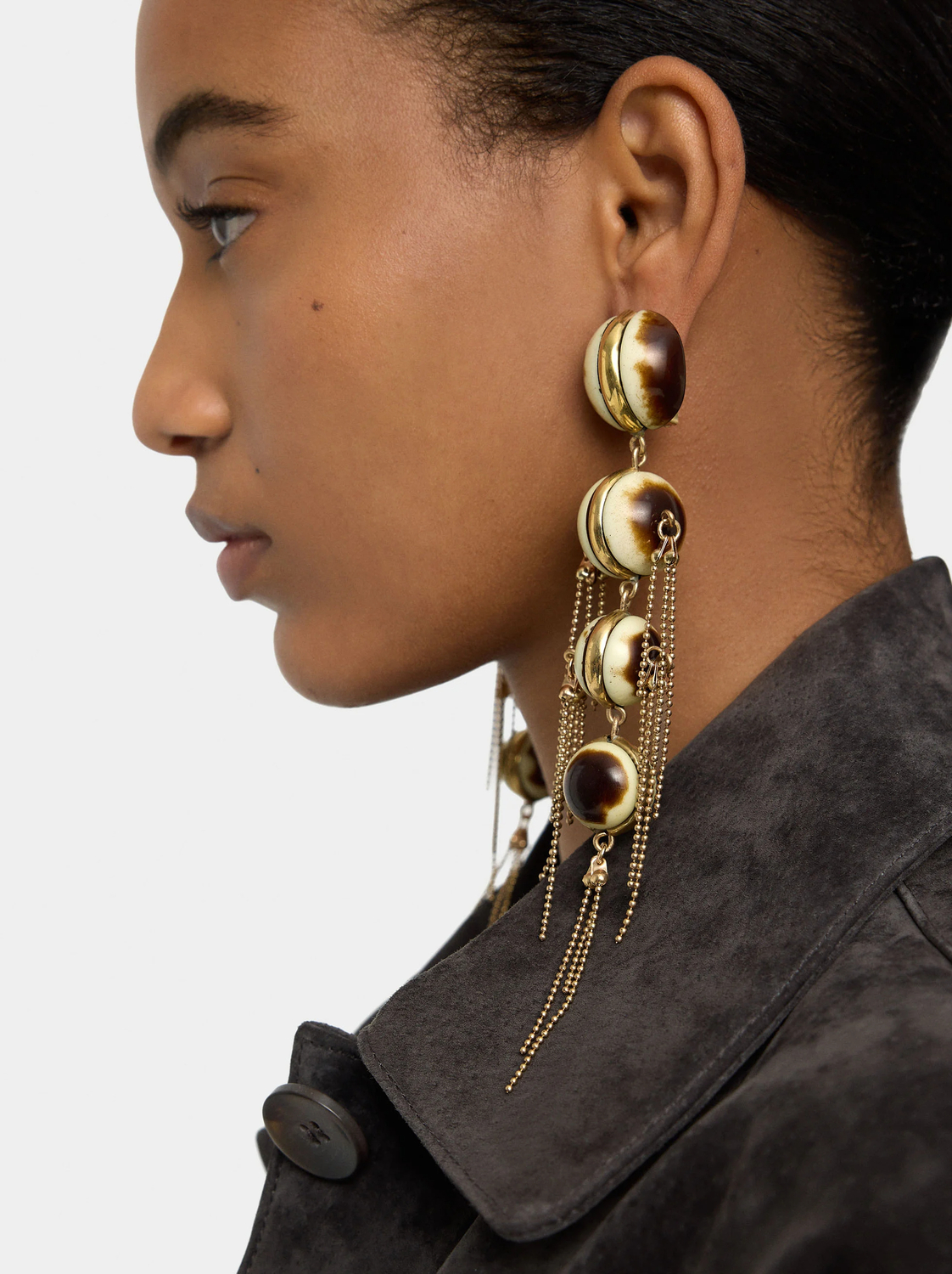 Макси-серьги с бусинами из смолы, украшенными металлической полосой по центру.