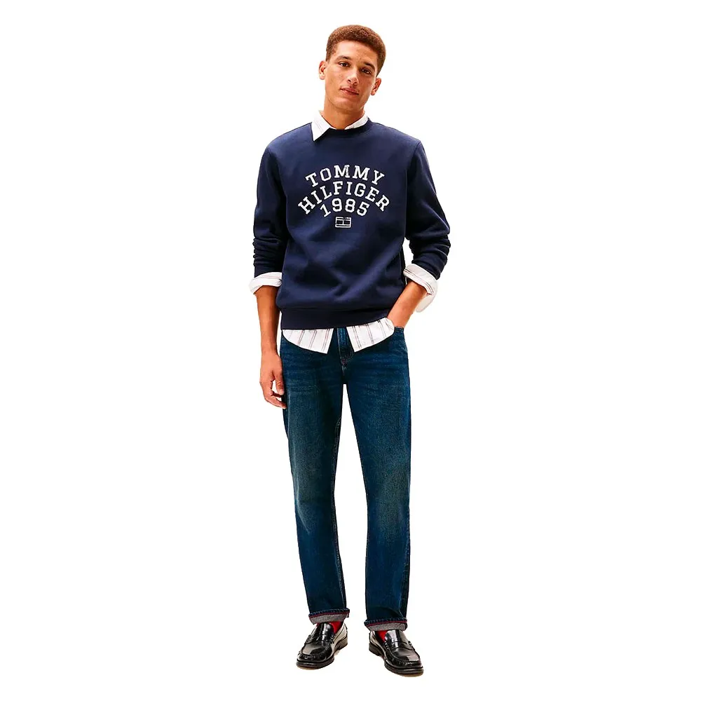 Главная особенность этой культовой модели - смелый вышитый логотип TOMMY HILFIGER в форме арки, расположенный на груди. Этот логотип в университетском стиле - яркий намек на богатое наследие бренда, мгновенно добавляющий нотку аутентичного спортивного характера любому образу. Дополнительные детали включают фирменный флаг Tommy Hilfiger, вышитый на манжете, - тонкий, но узнаваемый знак качества и превосходного мастерства. Дизайн дополнен тонкой ребристой вязкой на манжетах и подоле, которая не только добавляет текстурный контраст, но и помогает сохранять тепло и поддерживать форму толстовки со временем.