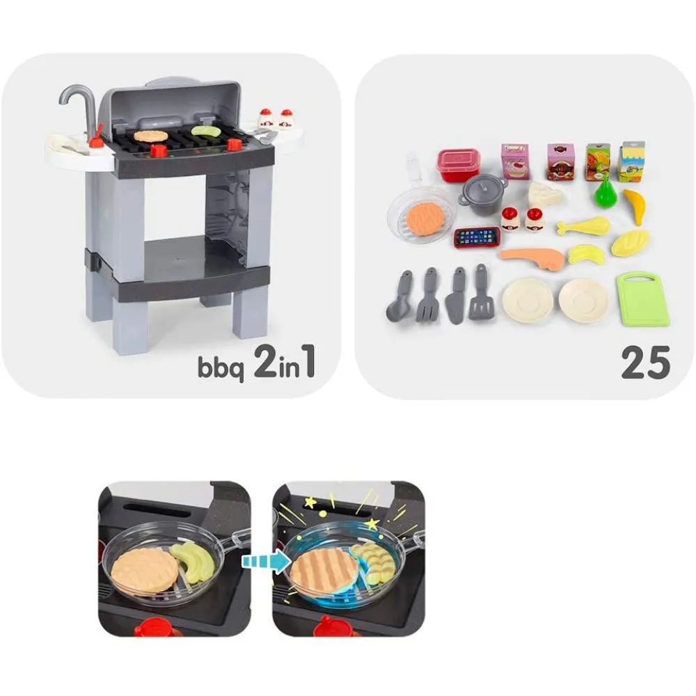 Когда приходит время для вечеринки на заднем дворе, простой переворот превращает устройство в фантастический гриль для барбекю. Эта сторона вдохновляет на совершенно новый мир игр, где ваш ребенок может стать мастером гриля, переворачивая бургеры и подавая приготовленные на гриле деликатесы семье и друзьям. Эта двойная функциональность не только удваивает игровую ценность, но и дольше удерживает внимание детей, постоянно открывая для них новые способы взаимодействия со своей игрушкой.