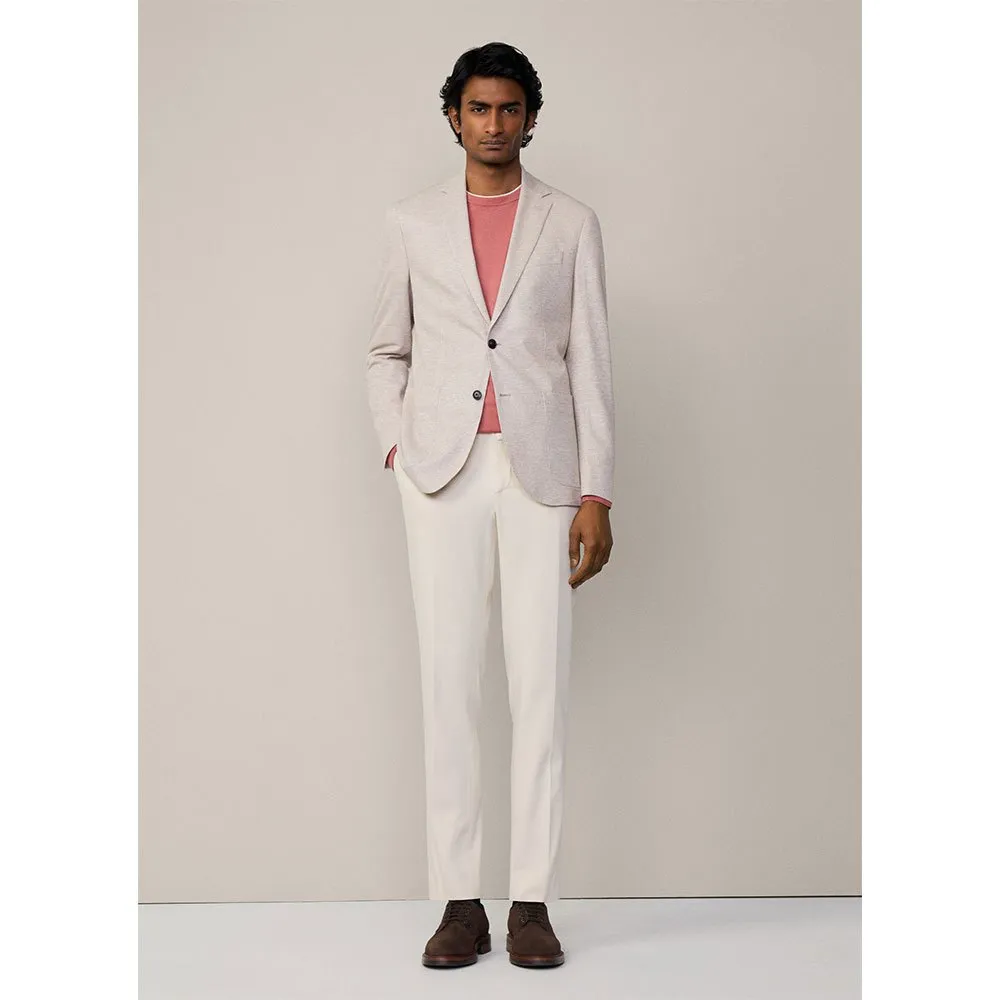 Дизайн воплощает приверженность Hackett классической британской мужской моде, обновленной для современного джентльмена. Он отличается четким, современным силуэтом с классическими лацканами и застежкой на две пуговицы спереди, что создает чистую и привлекательную линию. Неструктурированный или слегка структурированный дизайн повышает комфорт и создает более расслабленное ощущение, сохраняя при этом элегантный и собранный вид. Функциональные и стильные накладные карманы спереди еще больше подчеркивают его изысканный, но в то же время повседневный шарм, предлагая удобное место для необходимых вещей, не нарушая элегантный силуэт блейзера.