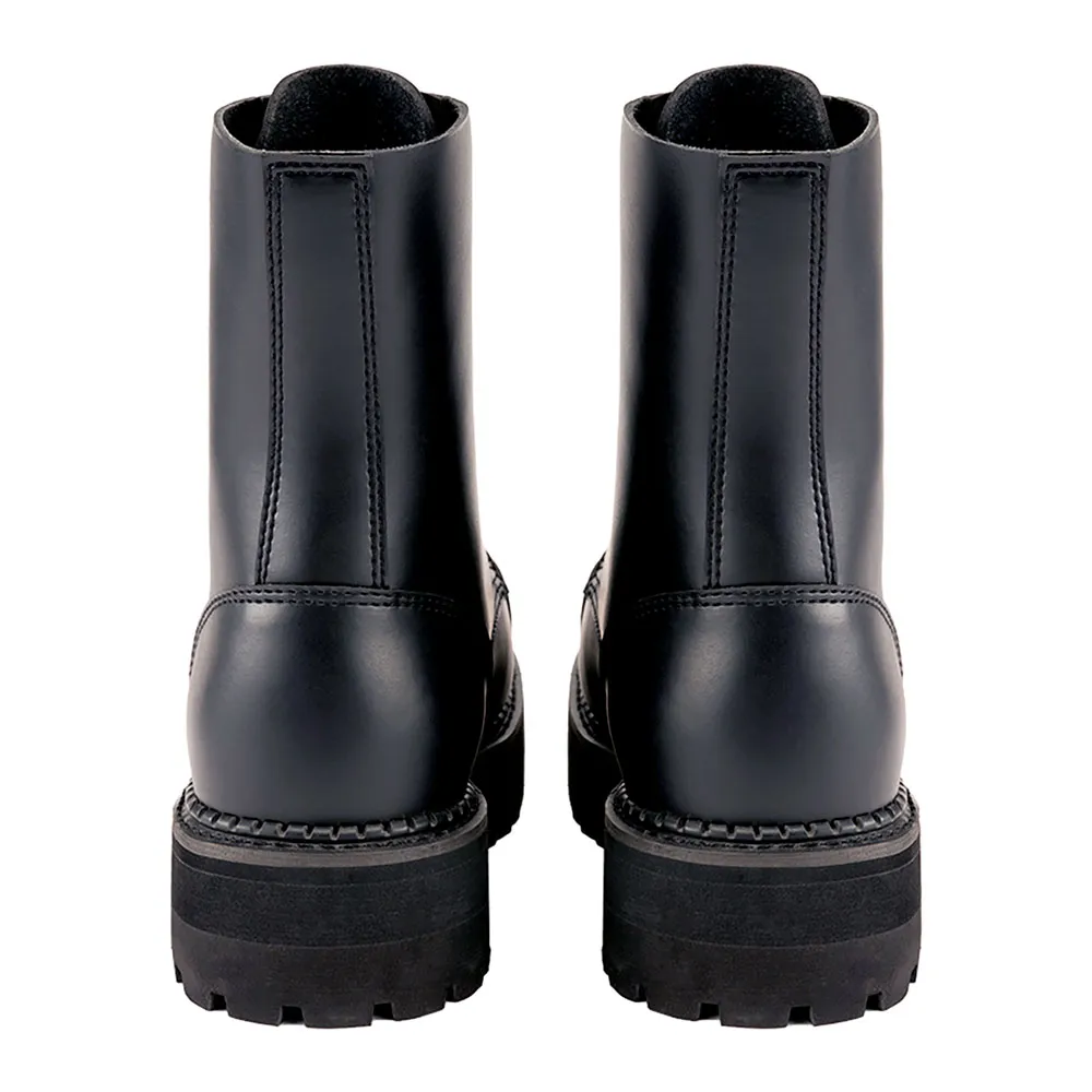 Откройте для себя новое измерение городской моды с ботинками BRANDIT Plateau Phantom с 10 люверсами. Созданные для современного мужчины, который требует как внушительного присутствия, так и надежности, эти кожаные ботинки средней высоты станут идеальным дополнением к вашей коллекции обуви. Plateau Phantom органично сочетает в себе классическую эстетику армейских ботинок с современной, приподнятой платформой, создавая силуэт, который одновременно вневременной и агрессивно современный. Независимо от того, передвигаетесь ли вы по городским улицам, направляетесь на концерт или формируете свой уникальный личный стиль, эти ботинки созданы, чтобы выделяться и быть прочными.