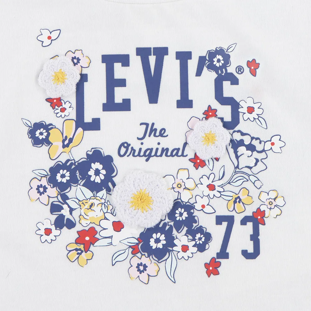 Футболка с коротким рукавом имеет удобный круглый вырез, позволяющий легко надевать и снимать ее. Свободный крой обеспечивает достаточно места для движений, гарантируя, что ваш ребенок сможет свободно играть, не чувствуя себя скованным. Знаменитый логотип Levi's добавляет нотку вневременного стиля, делая эту футболку универсальной вещью, которую легко сочетать с другими предметами гардероба. Мягкая, прочная ткань бережно относится к нежной коже и рассчитана на повседневные игры. Футболка с короткими рукавами идеально подходит для теплой погоды, обеспечивая вашему ребенку прохладу и комфорт даже в самые активные дни.
