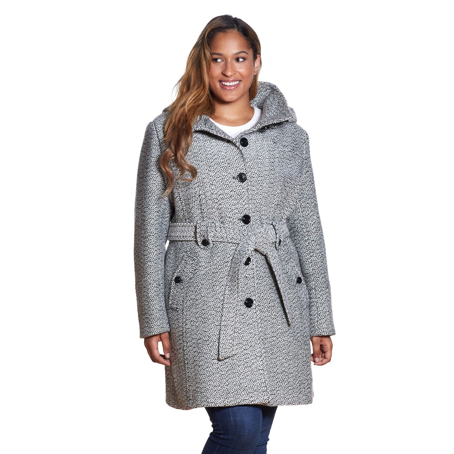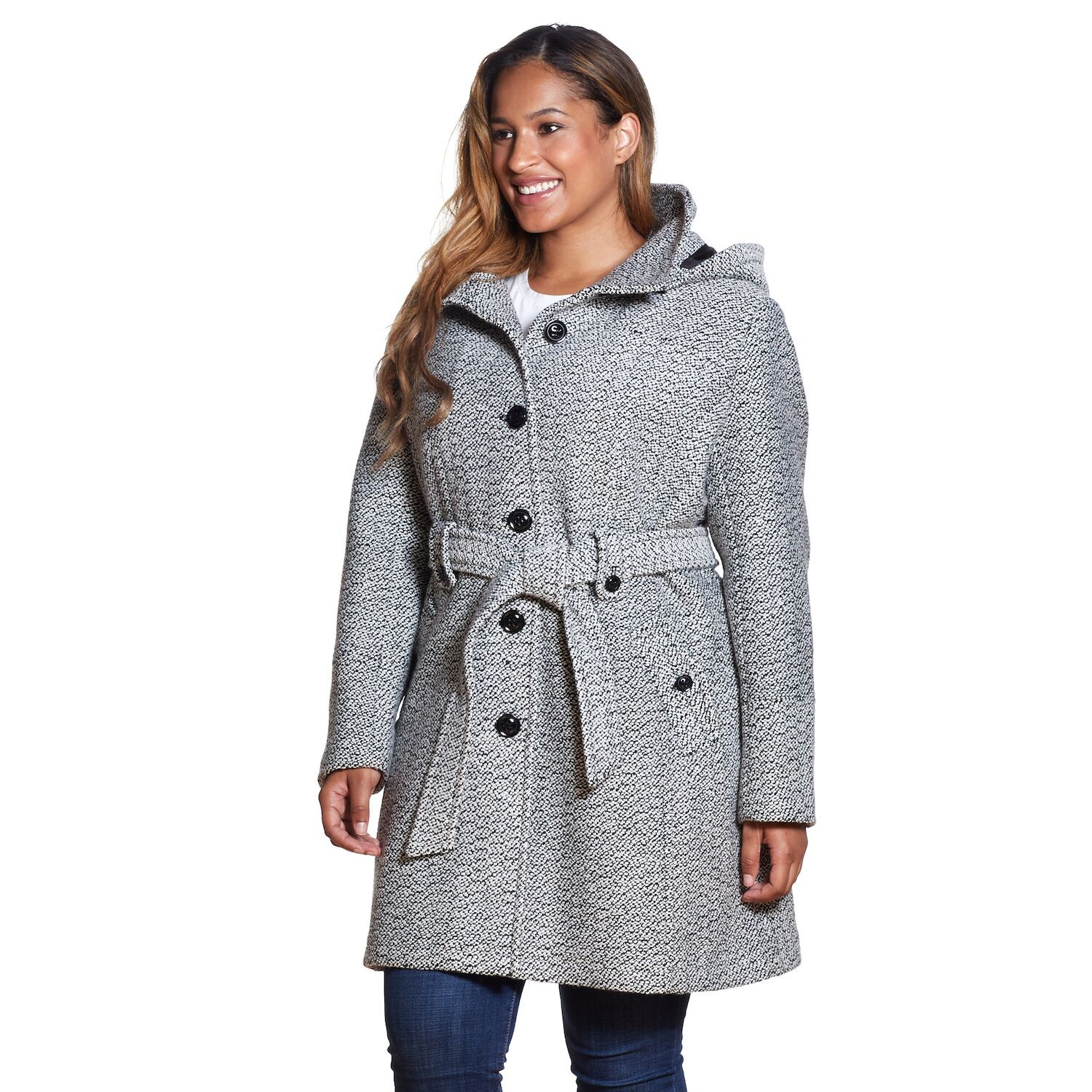 Полушерстяное пальто больших размеров с капюшоном Gallery Gallery