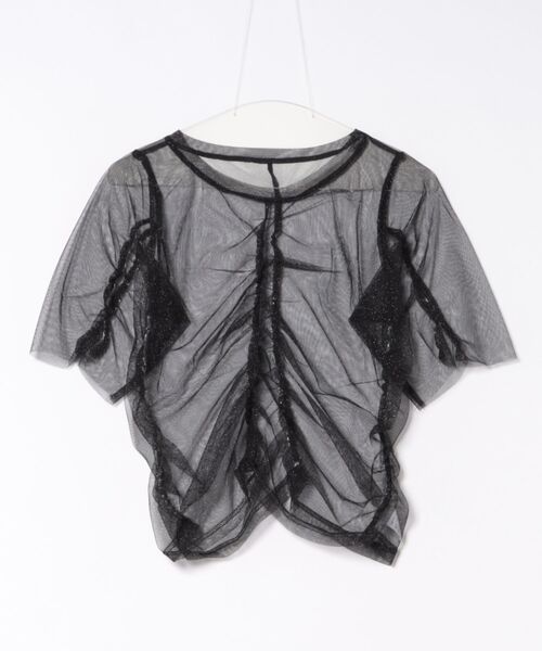 Топ с драпировкой из модного полупрозрачного тюля.