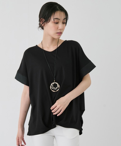Пуловер из тонкой ткани понте с добавлением вискозы и бамбуковыми складками по низу.