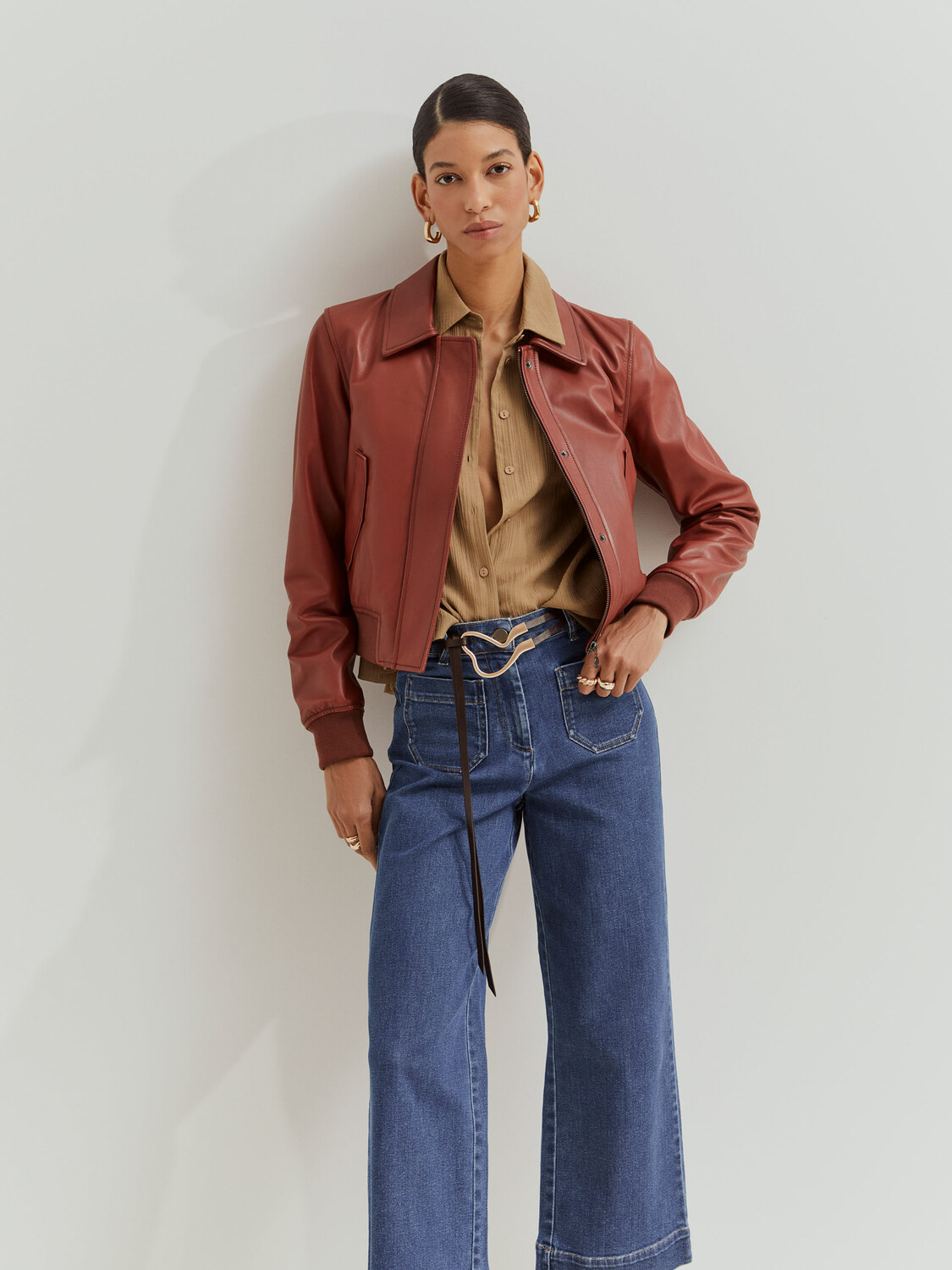 Куртка в стиле бомбер из 100% кожи, чтобы вывести ваш образ на новый уровень. Оснащена застежкой-молнией и кнопками. Детали: трикотажная резинка по низу и на манжетах, а также передние карманы.