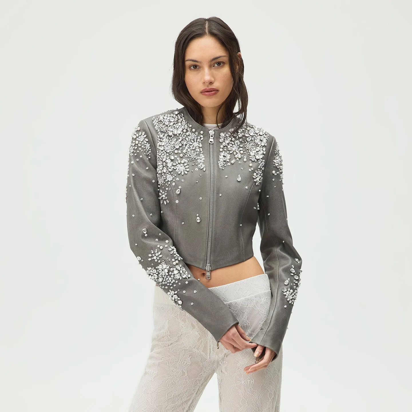 Lisa for Kith Women Brei Embellished Bolero Jacket — Сияющая классика от Лисы в оттенке Tin