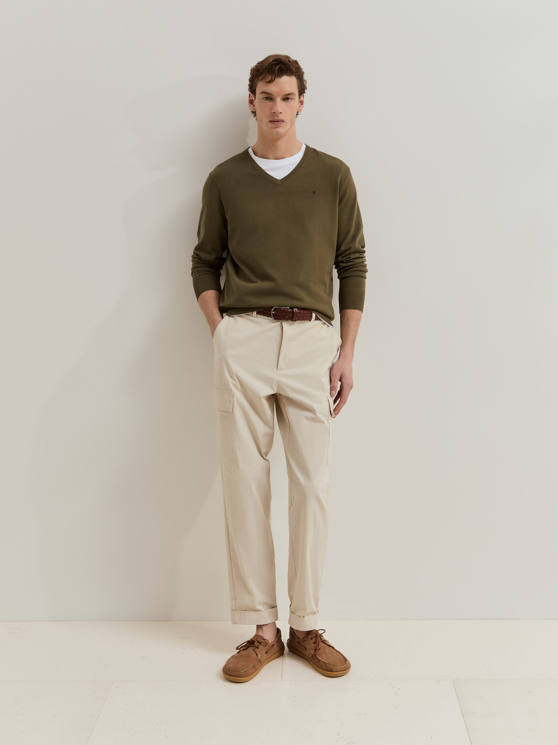 Свитер из хлопкового трикотажа с длинным рукавом. Особенности: V-образный вырез, трикотажная резинка на воротнике, манжетах и подоле для удобной посадки. Незаменимая и универсальная вещь, идеально подходящая для завершения вашего гардероба.