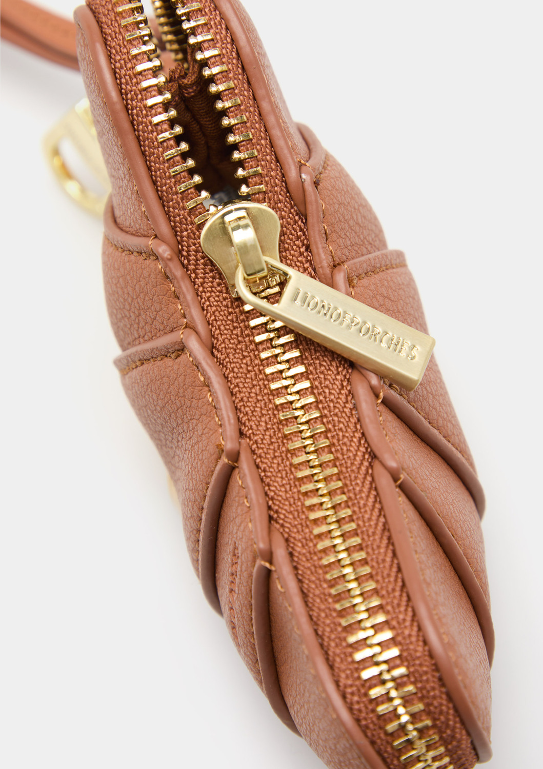 Брелок в форме круассана, который также функционирует как кошелек для монет. Дизайн отличается тиснеными швами, определяющими его культовую форму, и молнией золотистого оттенка с гравировкой названия бренда на бегунке. Включает тонкий ремешок в том же тоне, идеально подходящий для удобного крепления к сумкам или рюкзакам. Забавный и функциональный аксессуар, идеально подходящий для персонализации вашей сумки и ношения мелочей.