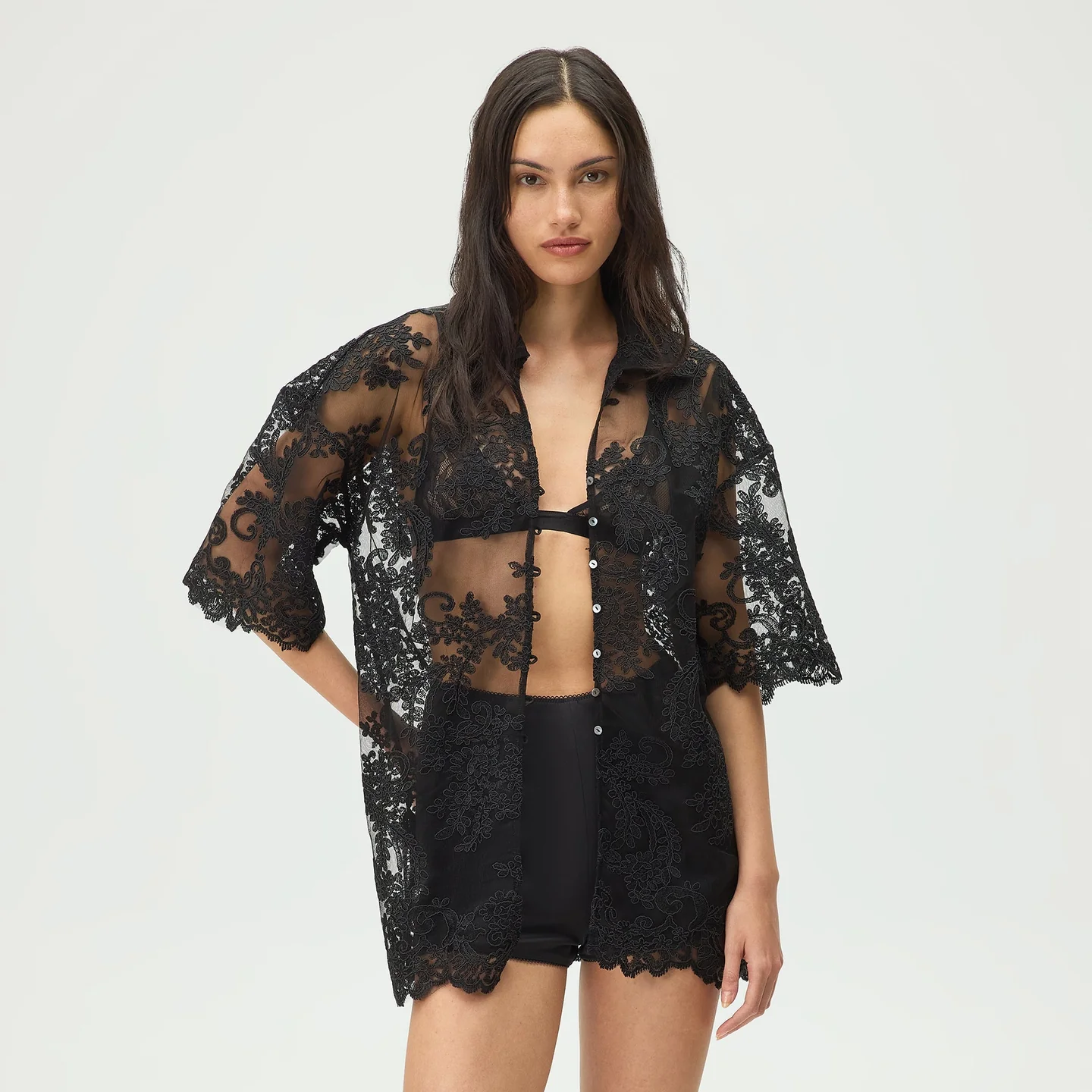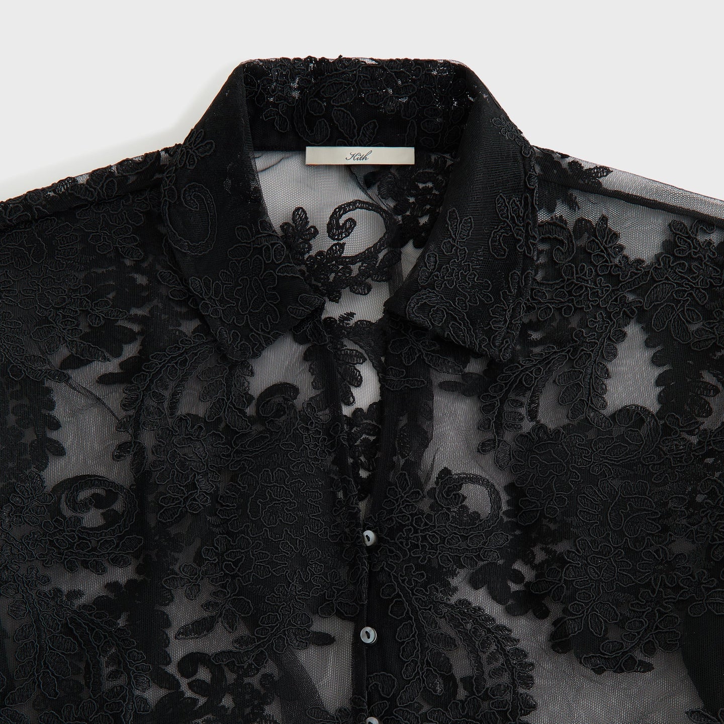Lisa for Kith Women Laina Lace Overshirt, BLACK — Рубашка оверсайз с кружевным характером от Лисы