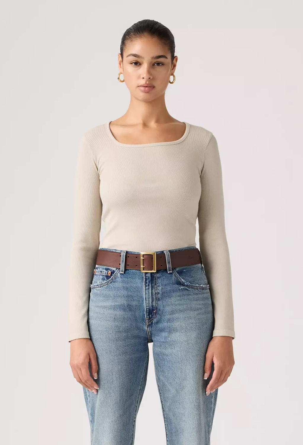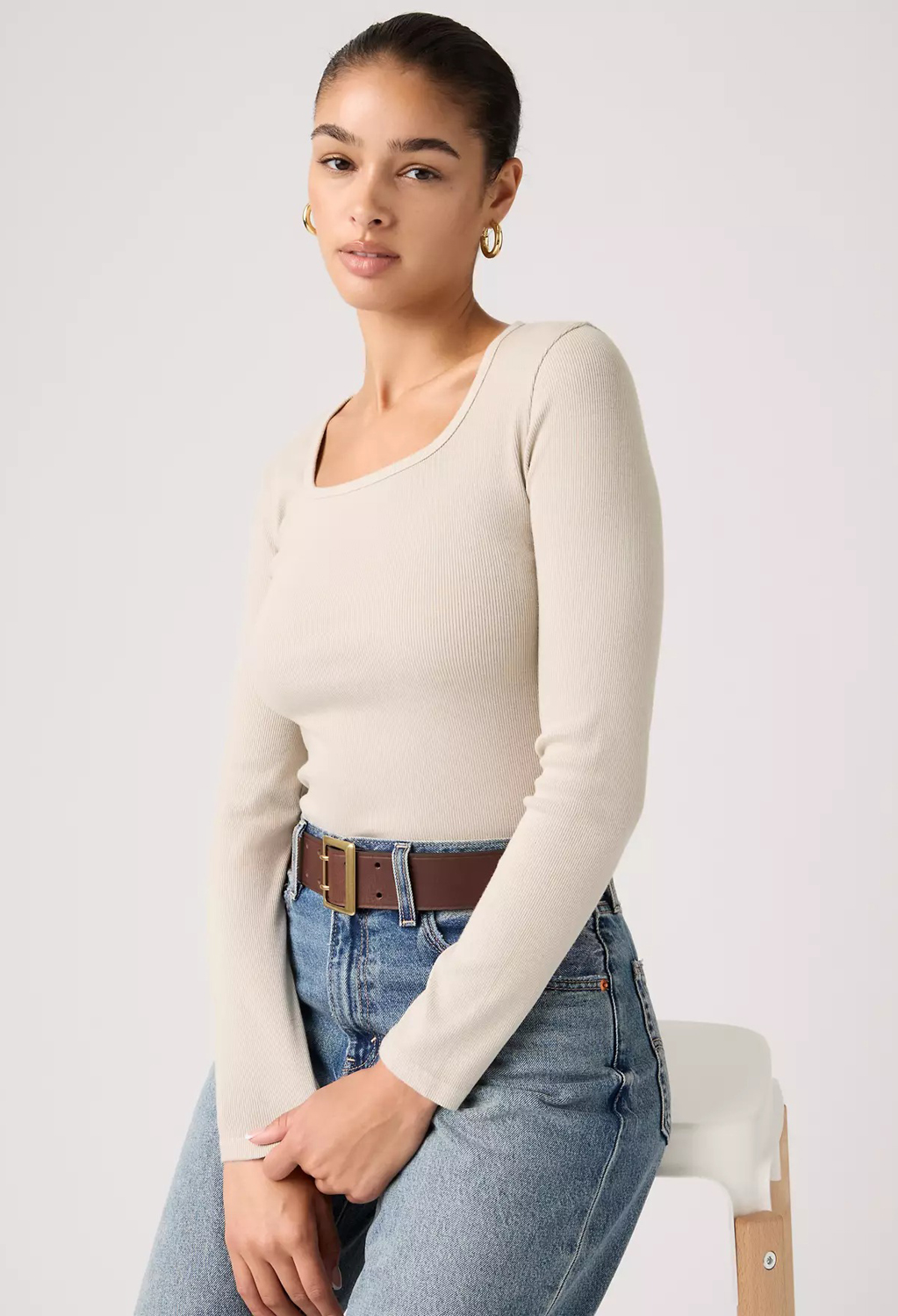 Завершает образ знаменитая красная нашивка Levi's — символ подлинности и качества, который говорит сам за себя. Этот топ станет вашим незаменимым спутником: носите его соло с джинсами или юбками, используйте как базу под пиджаки и кардиганы или создавайте многослойные образы с рубашками и свитерами.