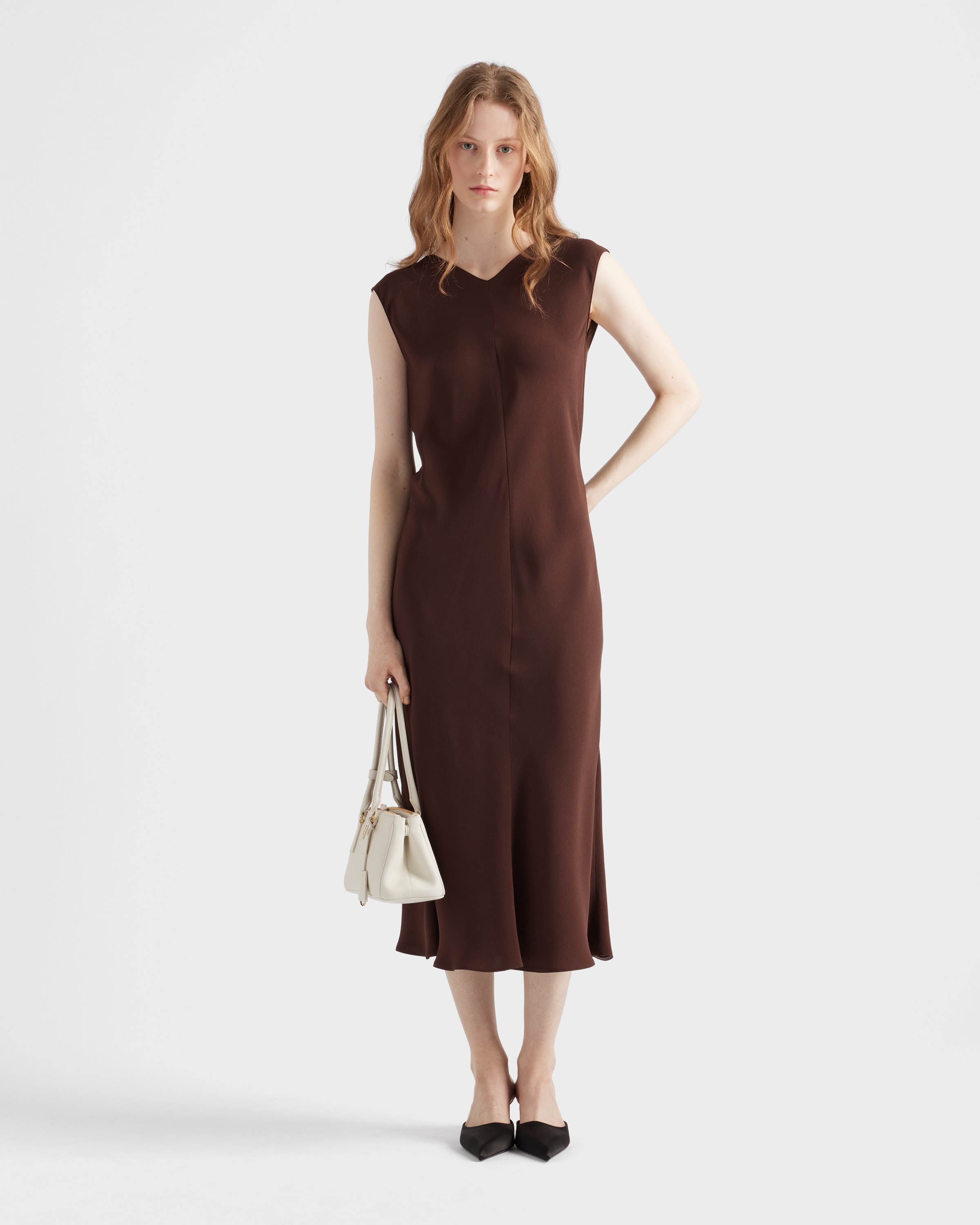 Миди-платье из атласного крепа Prada, коричневый