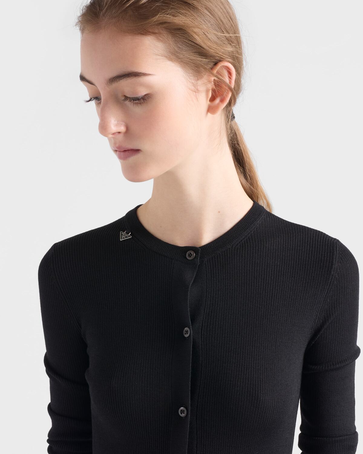 Кардиган из шерсти в рубчик Prada, черный