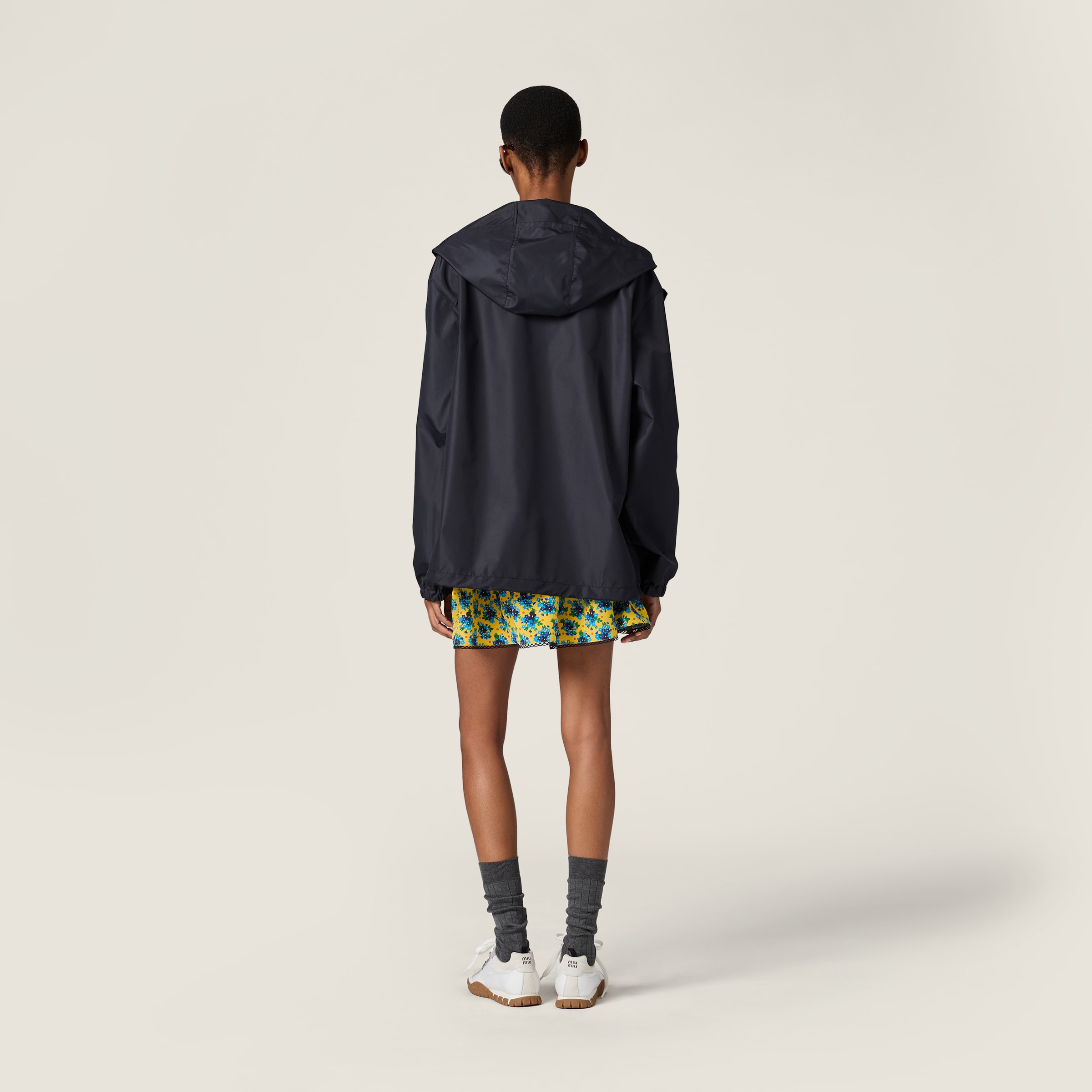 Спортивный стиль сочетается с лаконичными линиями в этом блузоне из технической ткани. Логотип Miu Miu завершает дизайн культовой деталью.