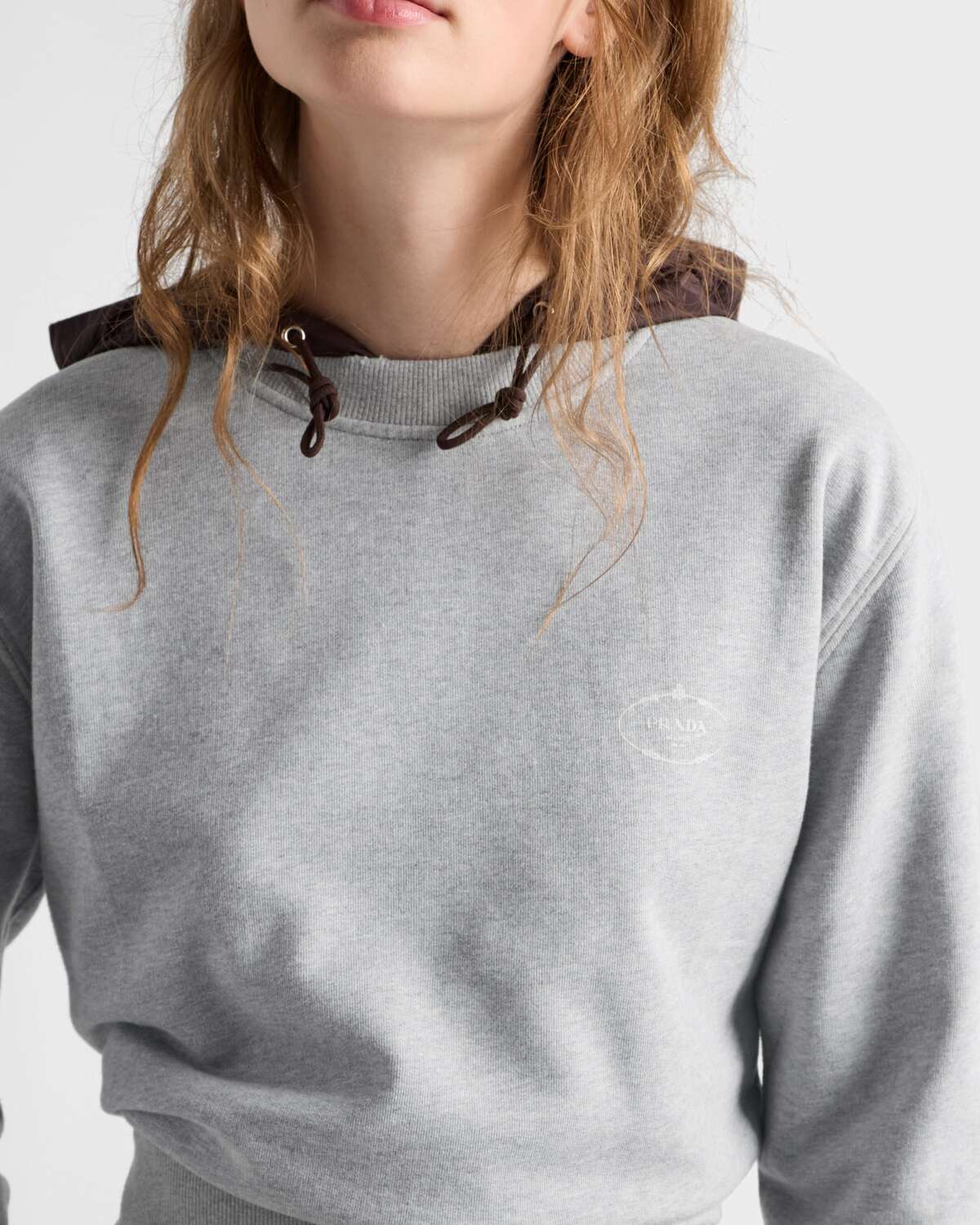 Хлопковый свитшот с круглым вырезом Prada, серый