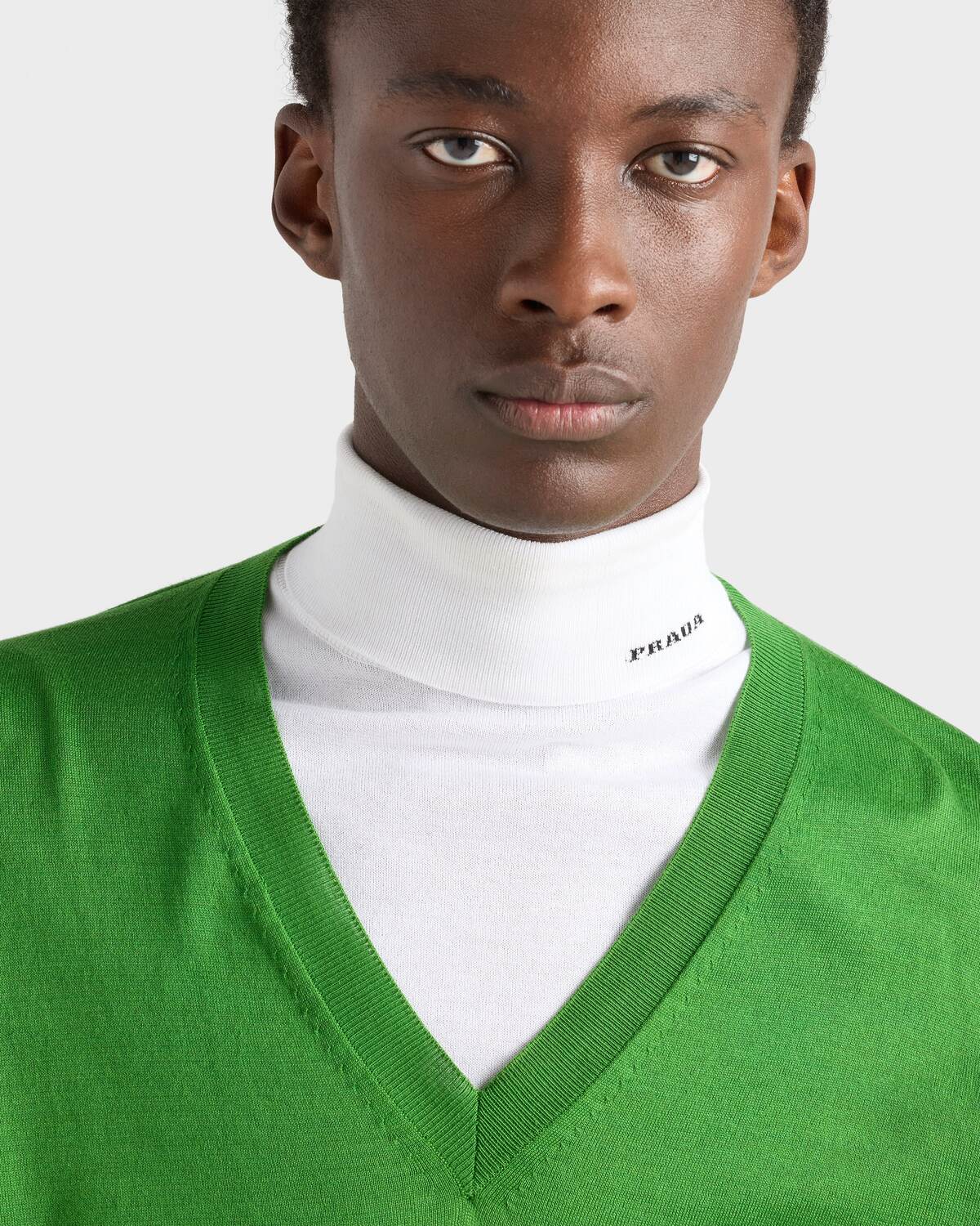 Хлопковый свитер с V-образным вырезом Prada, зеленый 142 499₽