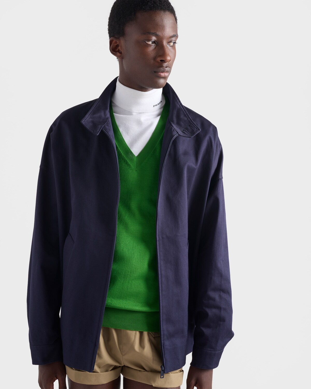 Хлопковый свитер с V-образным вырезом Prada, зеленый