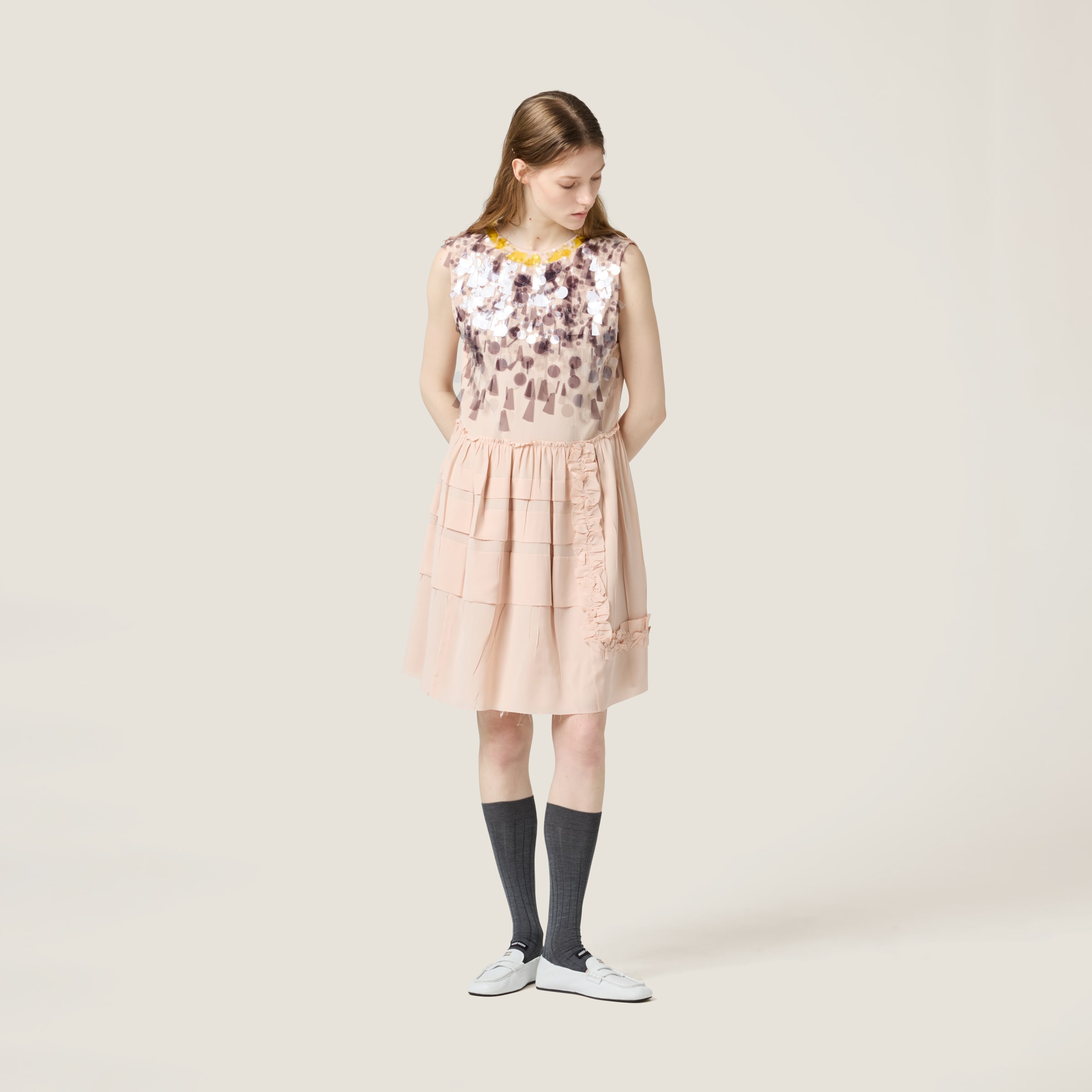 Вышитое платье из марокена MIU MIU, розовый 780 115₽