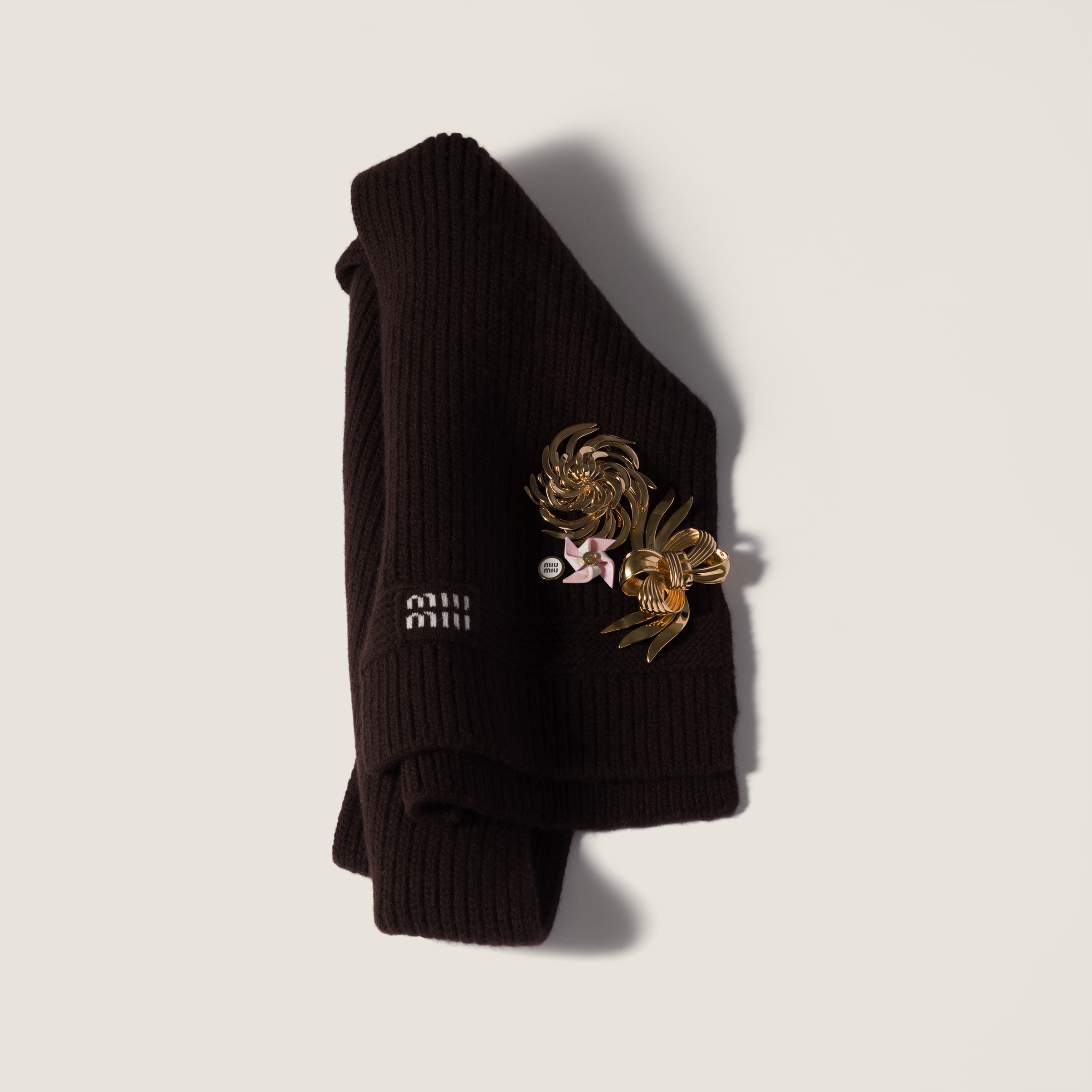 Кашемировый шарф MIU MIU, коричневый