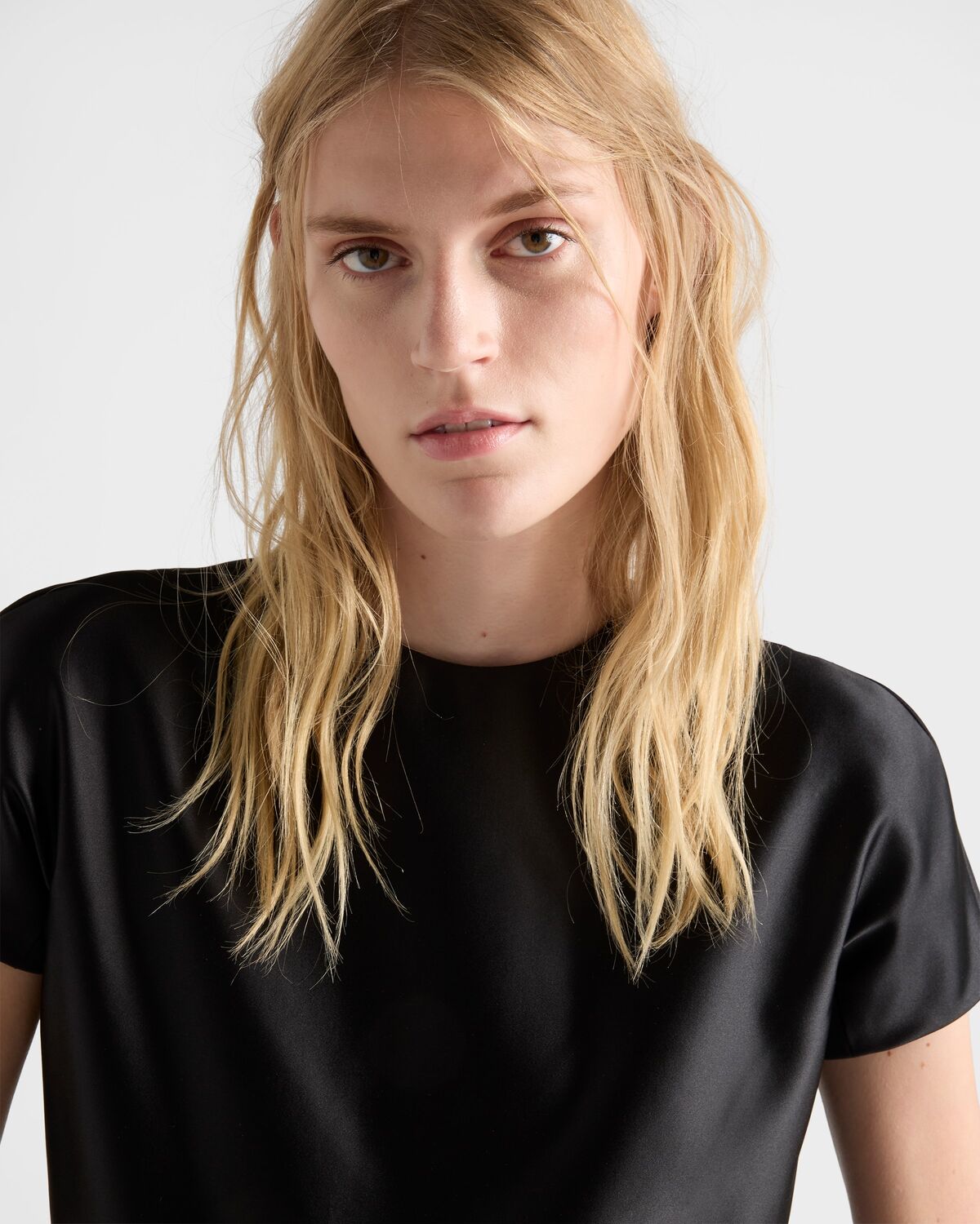 Мини-платье из шелка дюшес Prada, черный
