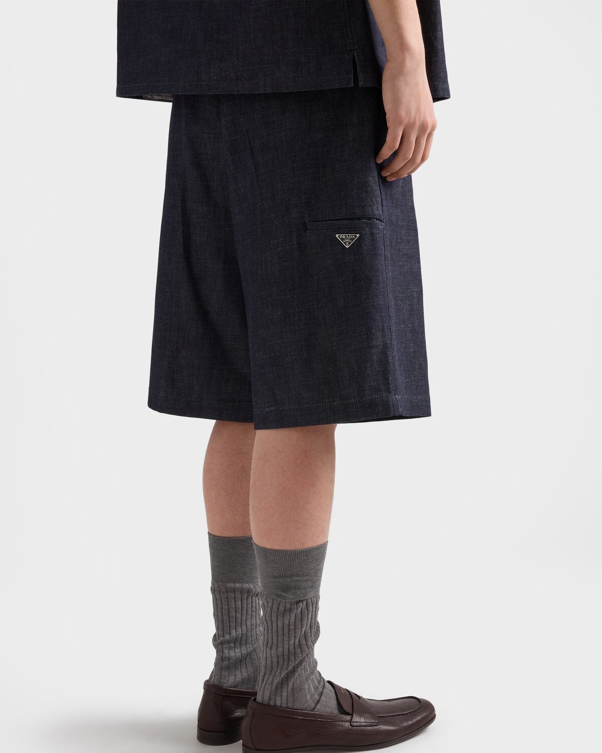 Бермуды из необработанного денима Prada, синий 128 254₽