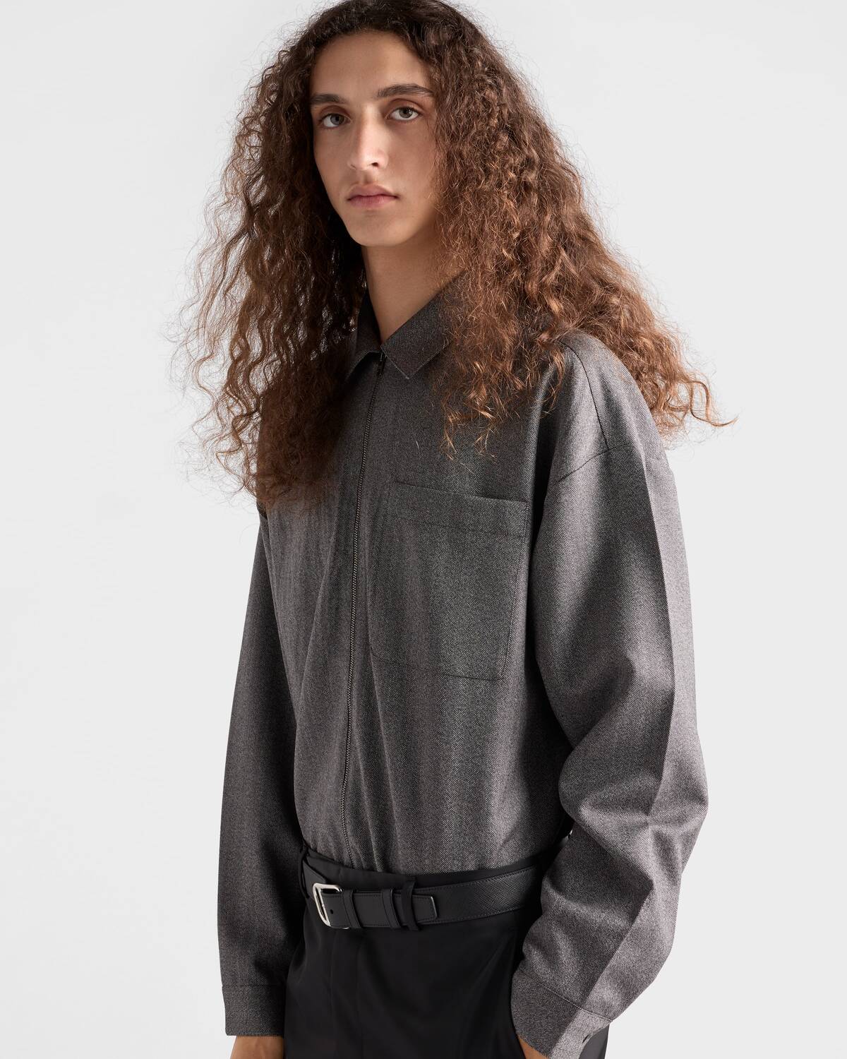 Рубашка на молнии из шерсти Prada, серый