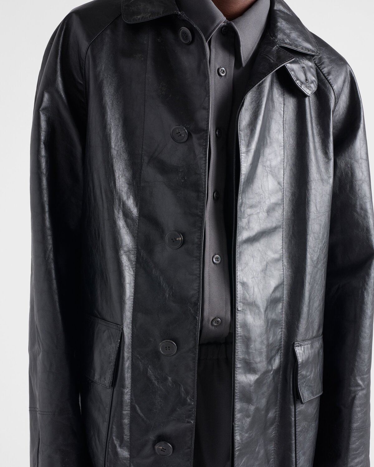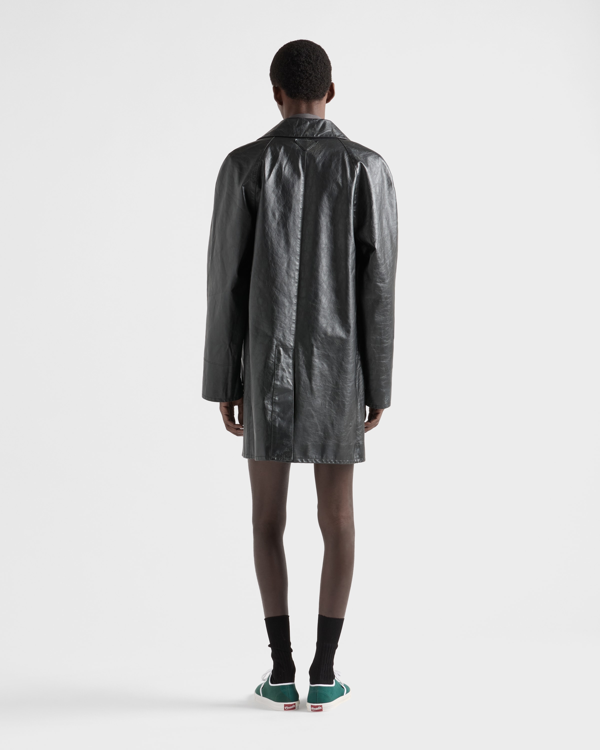 Кожаное пальто Prada, черный
