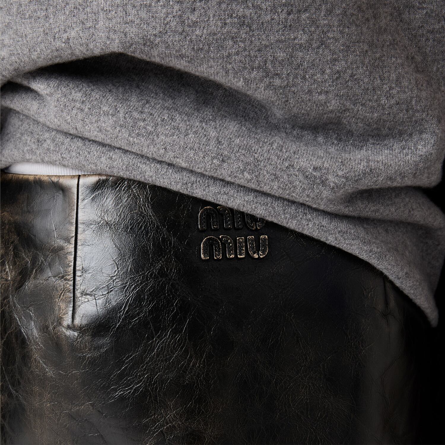 Вдохновленная архивным стилем 90-х, эта мини-юбка выделяется смещенным разрезом спереди и фактурным, винтажным видом кожи, полученным благодаря изысканному мастерству ремесленников.