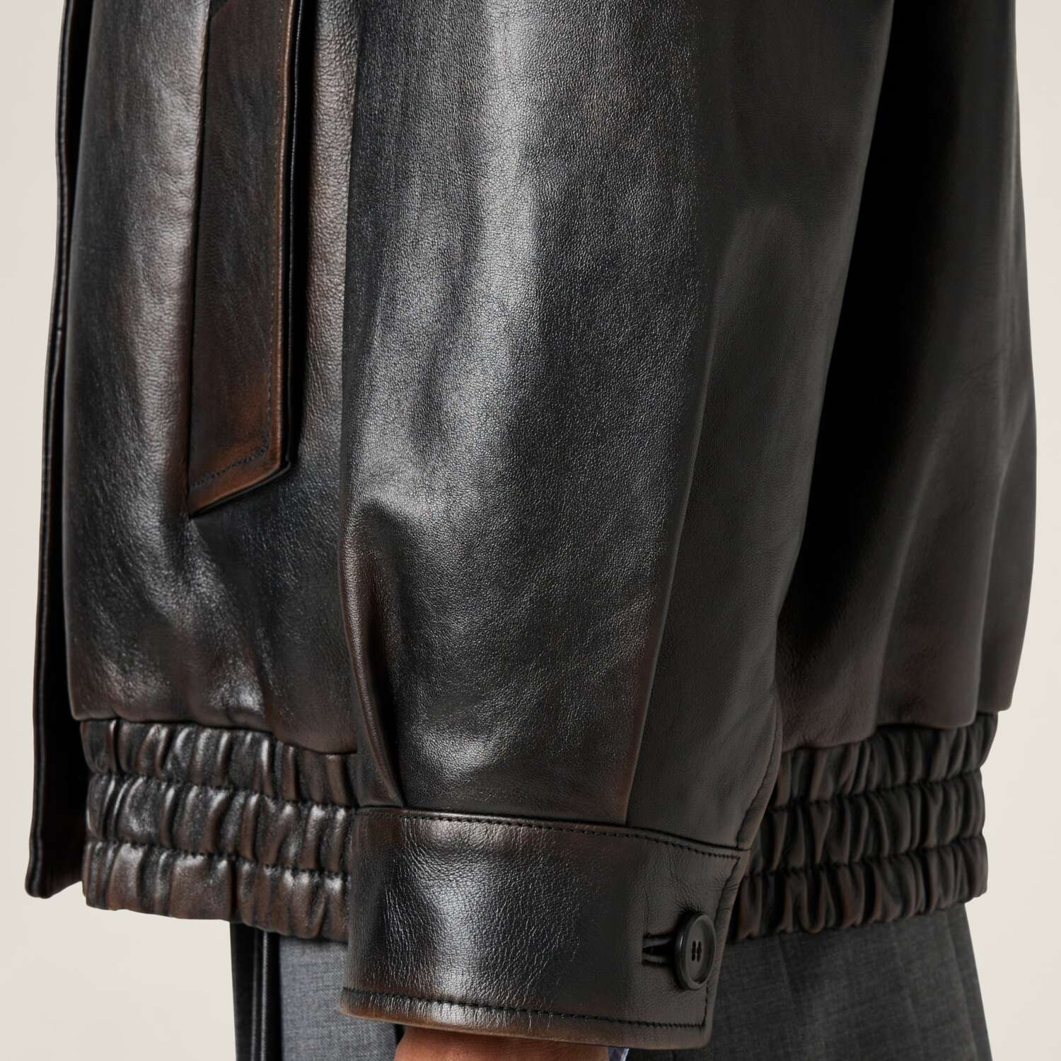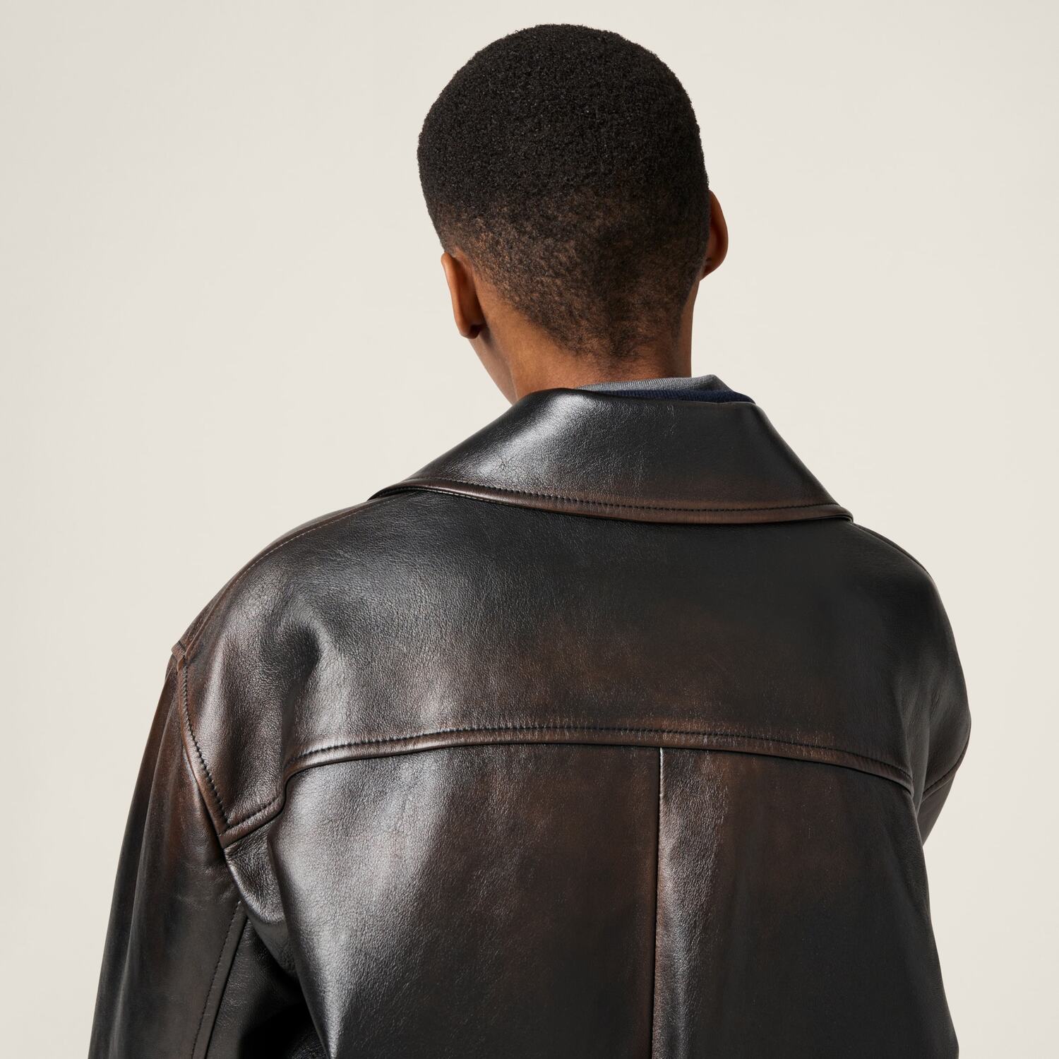 Эксперименты Miu Miu с винтажем выражаются в линиях этого жакета, в котором состаренная обработка наппы подчеркивает его культовую сущность и стиль.