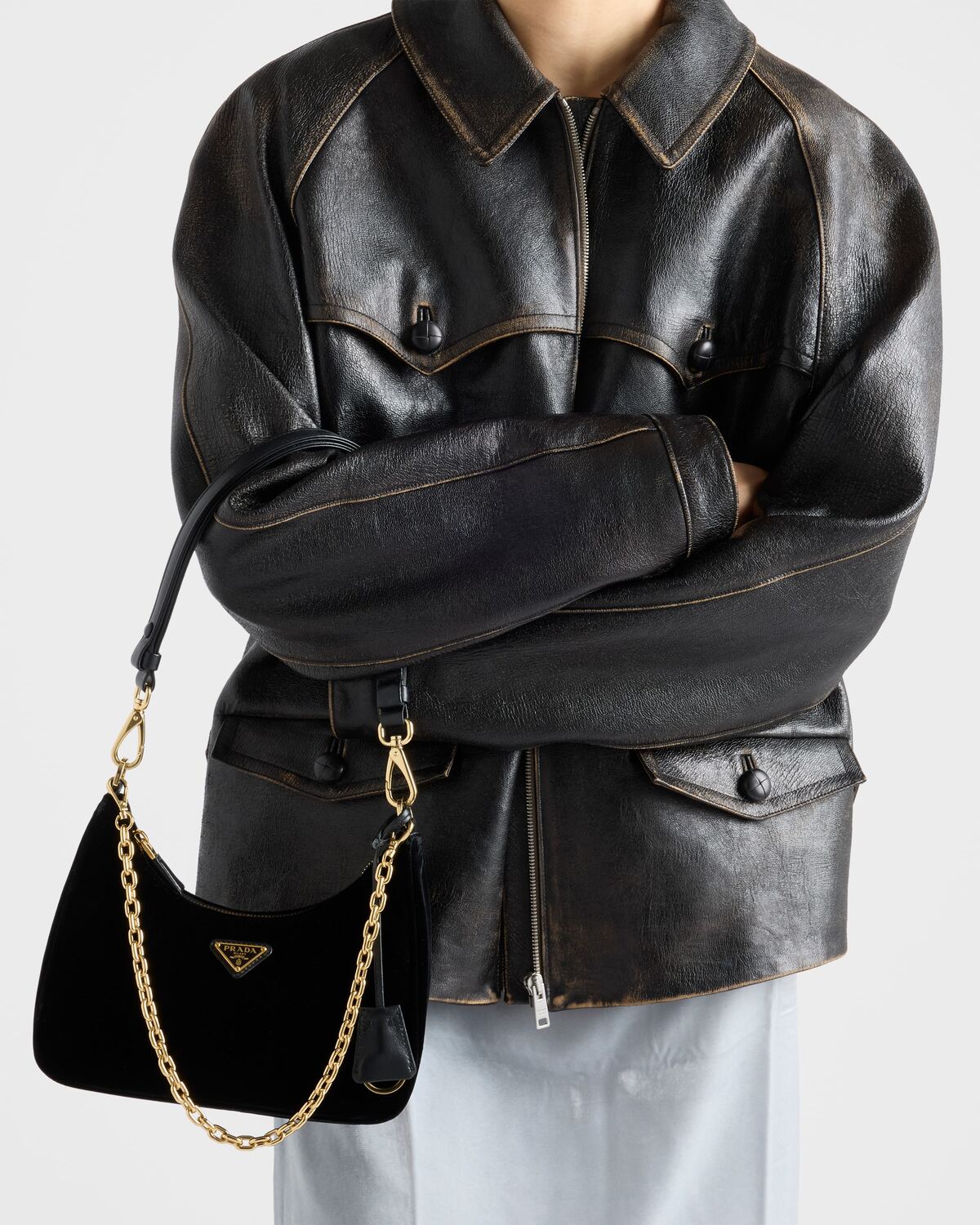 • Съемная, регулируемая ручка из цепочки и кожи