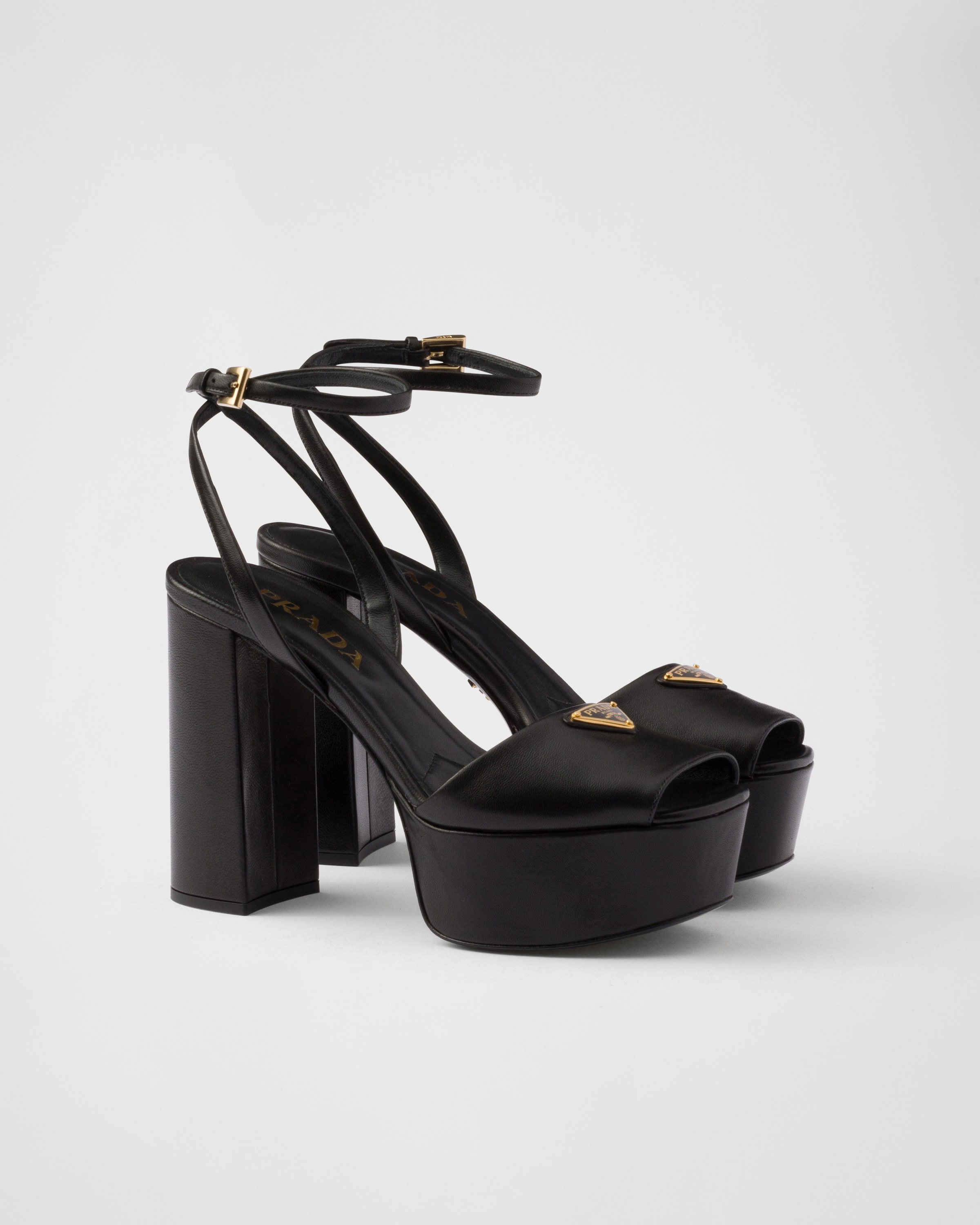 Босоножки на платформе из наппы Prada, черный