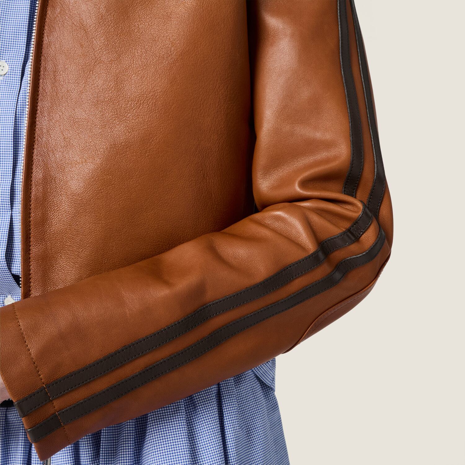 Вдохновленная классическим мотоциклетным стилем, эта куртка из наппы отражает коды мужской моды и отличается приталенным кроем, искусственной обработкой кожи и изысканными гоночными полосами контрастного цвета.