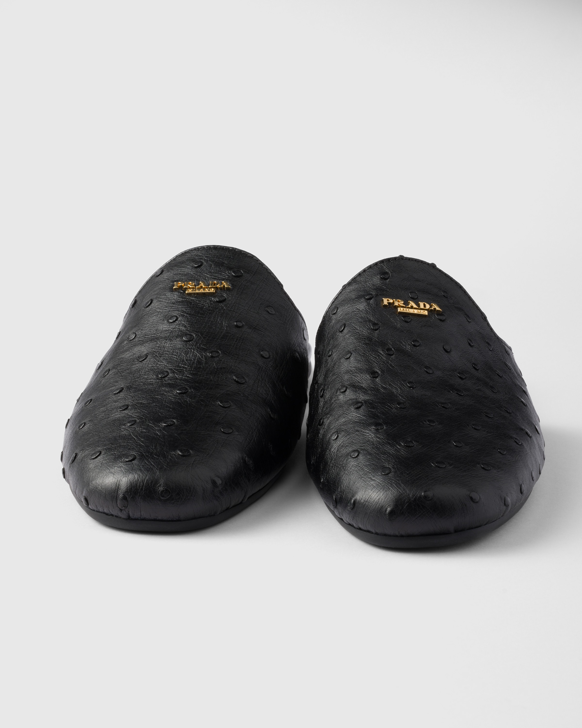 Мюли из страусиной кожи Prada, черный