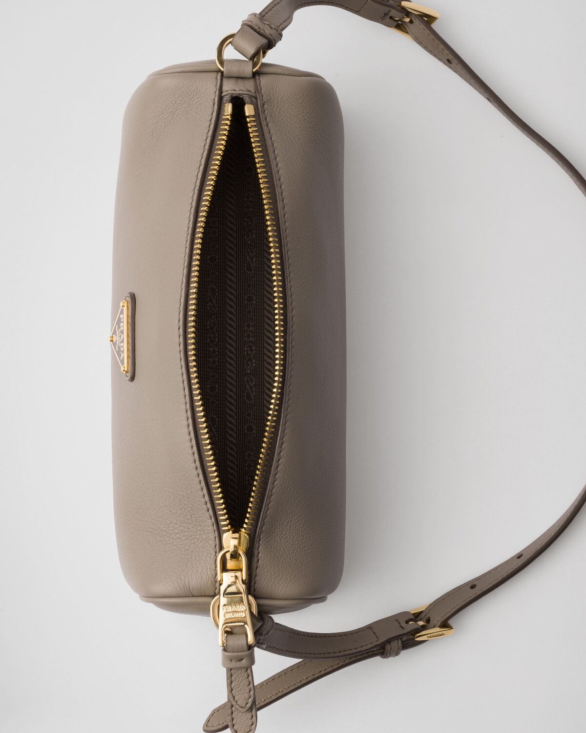 • Застежка-молния -- Эмалевая металлическая треугольная эмблема -- Регулируемая кожаная ручка -- Подкладка из нейлона с логотипом и внутренним карманом на молнии