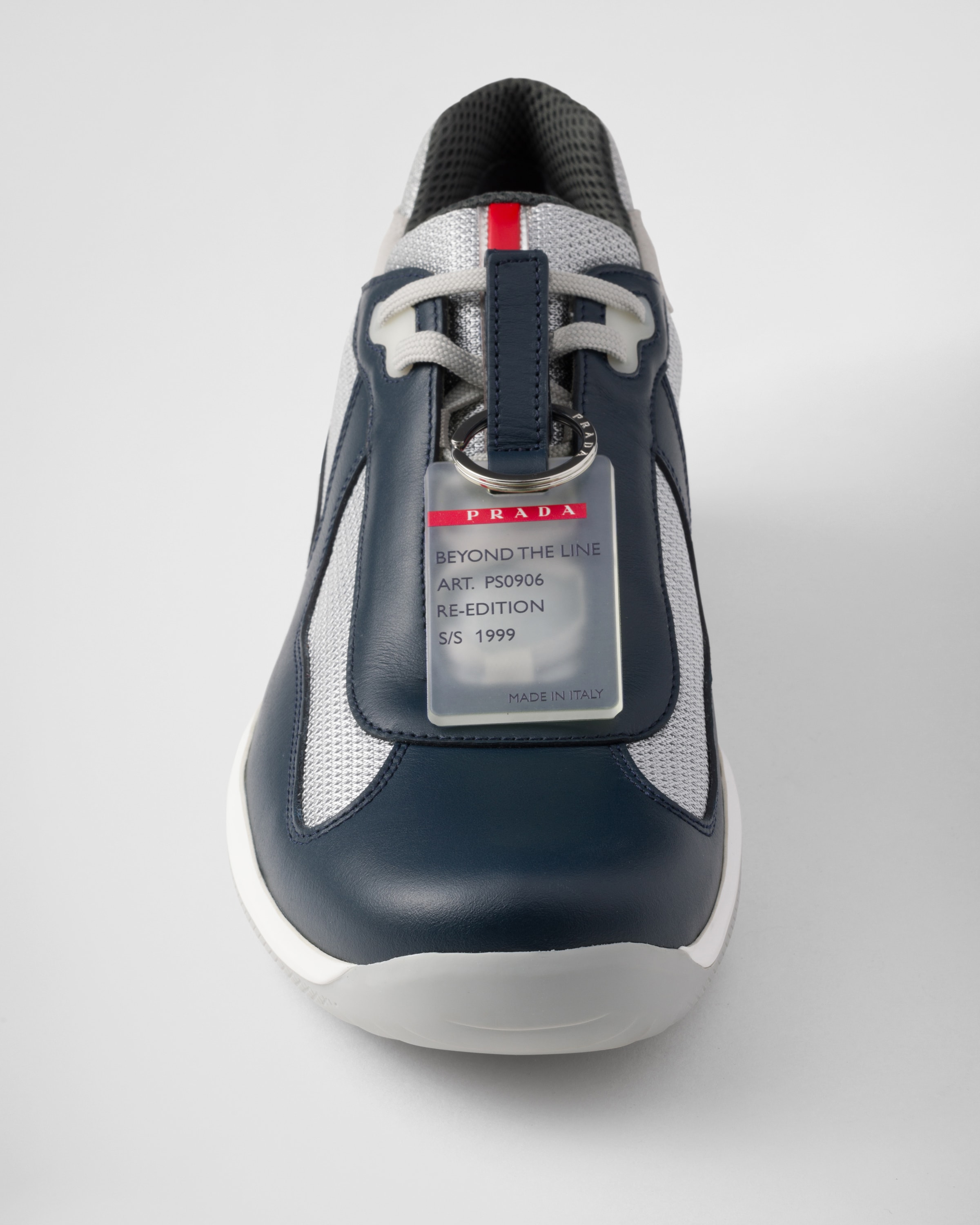 • Съемный ярлык "Beyond the Line" с указанием сезона, когда оригинальная модель была впервые представлена в коллекциях Prada