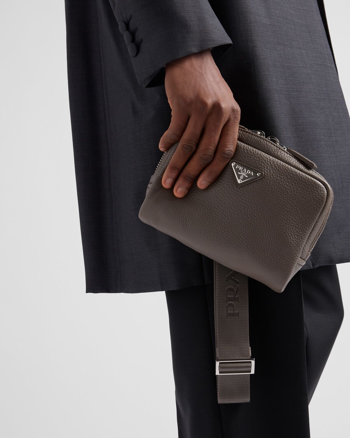 Кожаная сумка на плечо Prada, серый