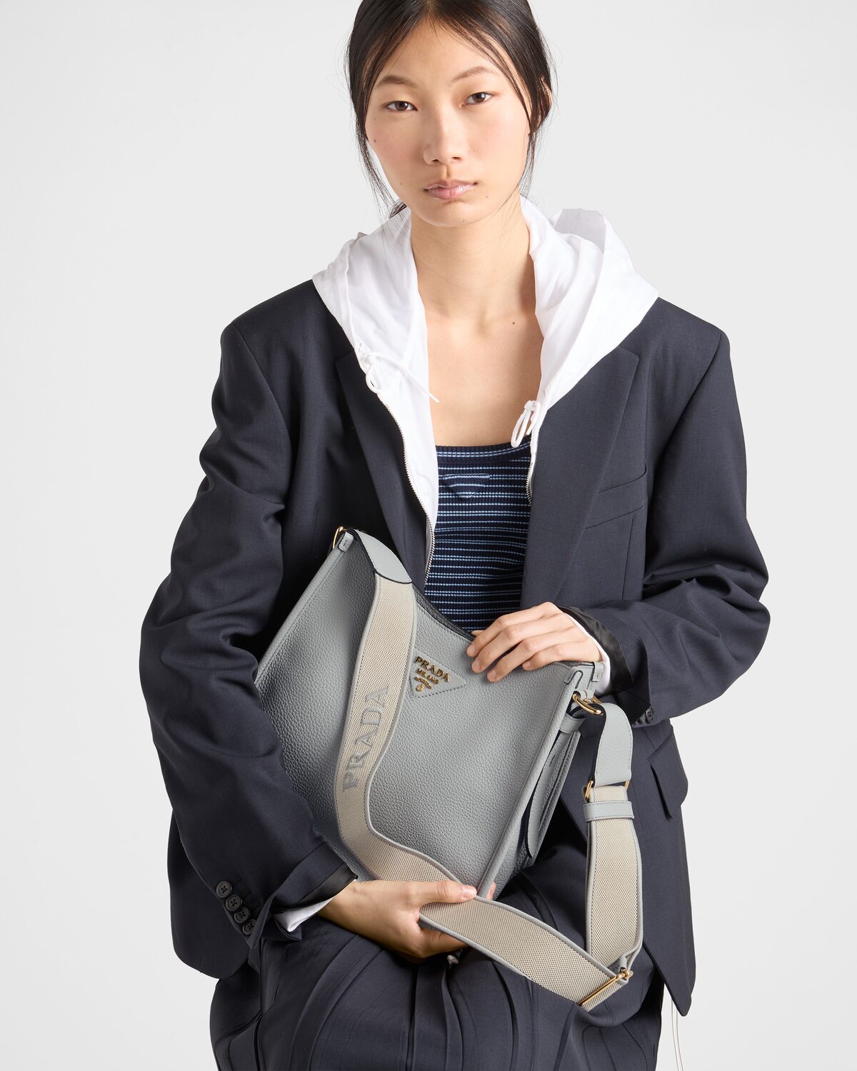 Сумка из кожи среднего размера Prada, серый