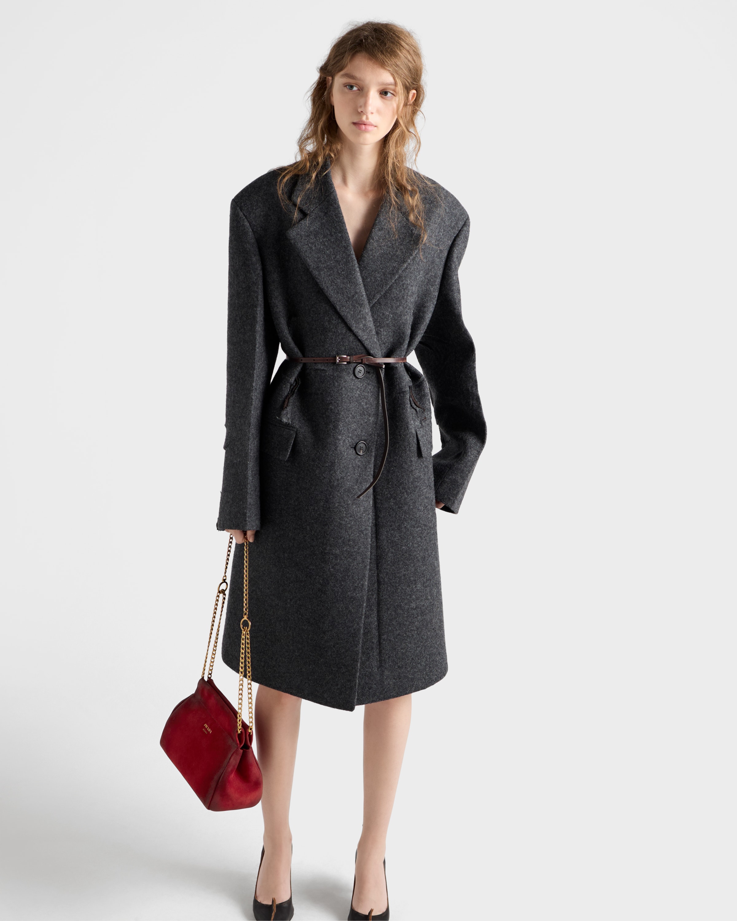 Мини-сумка Prada Enchaîné из замши, бордовый 306 058₽