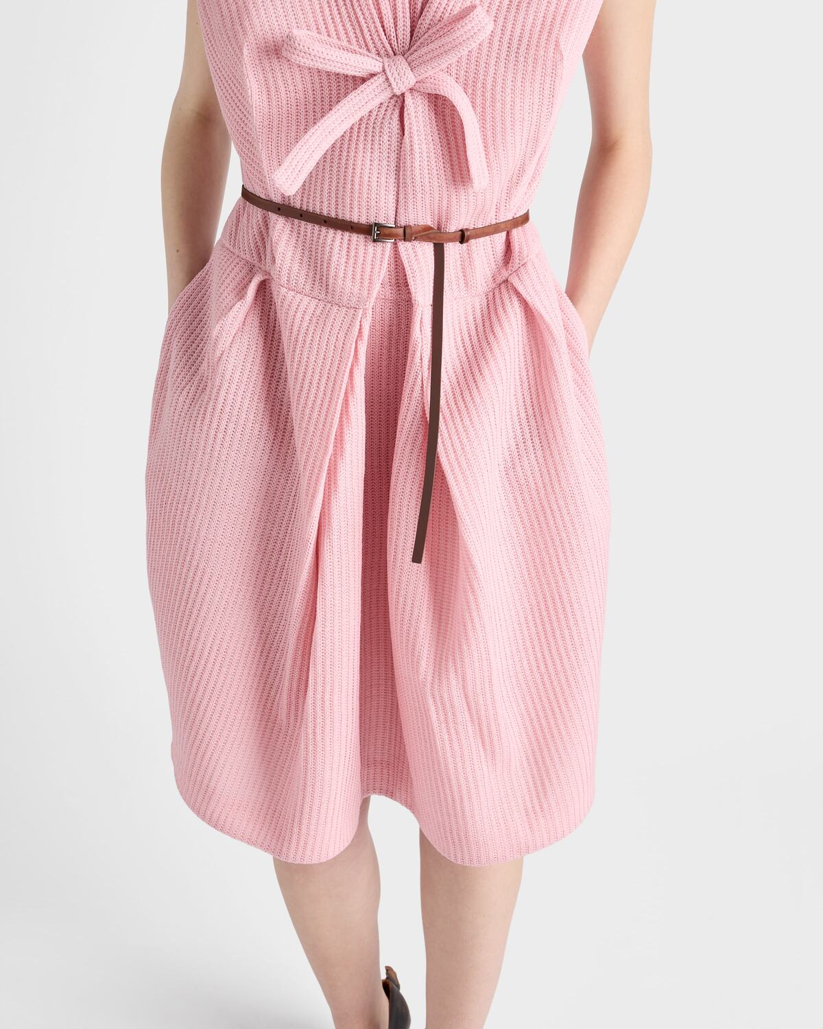 Вязаное шерстяное платье с бантом Prada, розовый 453 934₽