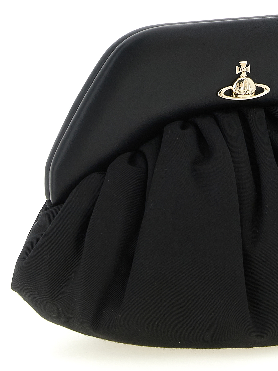 Клатч из мятой ткани 'Brooke', магнитная застежка с внешней отделкой под кожу и металлическим элементом, выполняющим функцию внутреннего зеркала, металлический логотип Orb спереди, съемная ручка 'Hazel'.